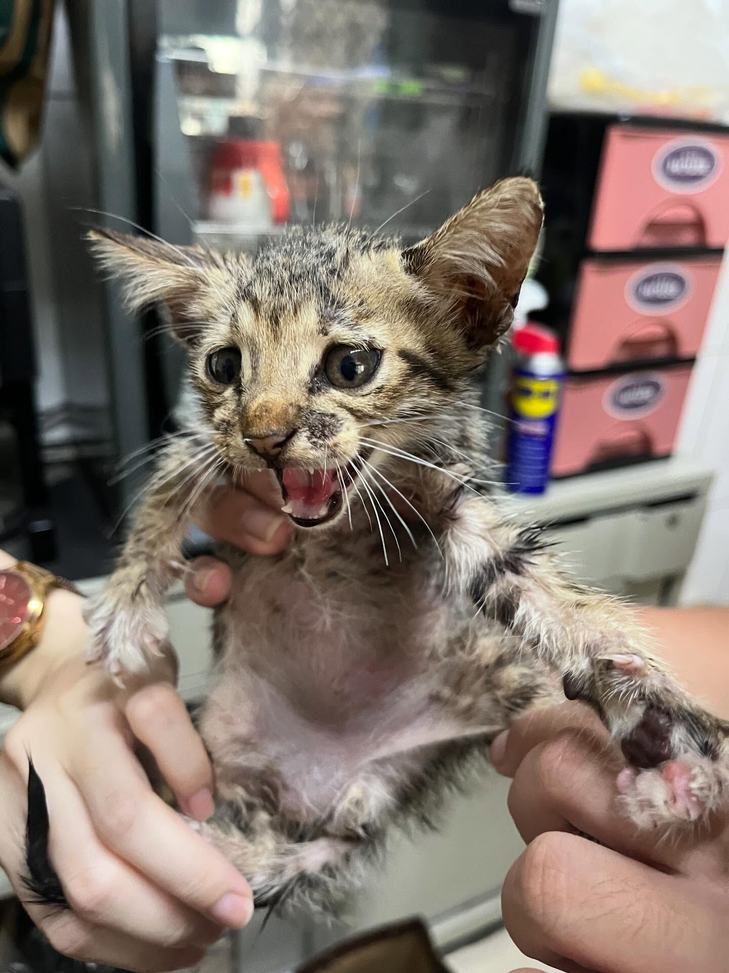 ▲Jo Jo 剛回家時患有嚴重的貓癬。(圖/Threads@_imyeeeting_提供,請勿隨意翻拍,以免侵權。)