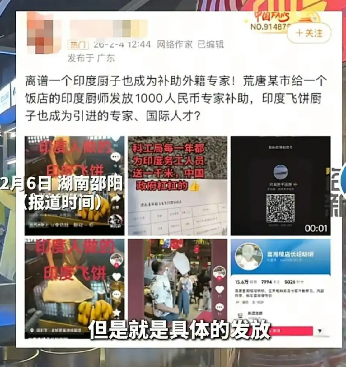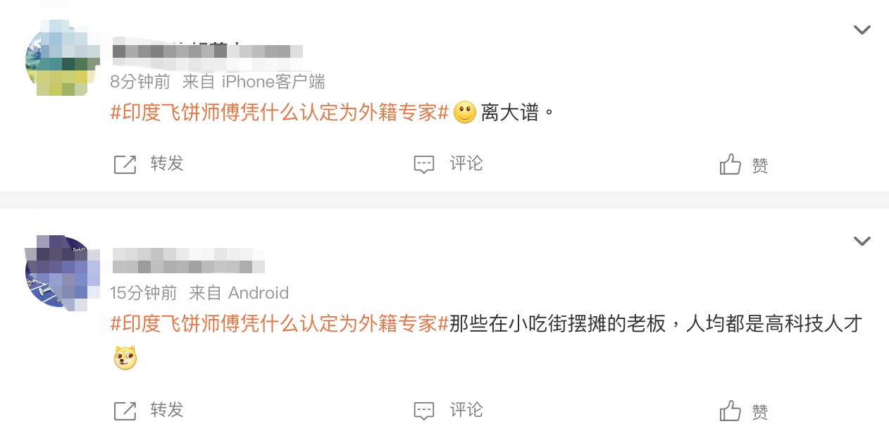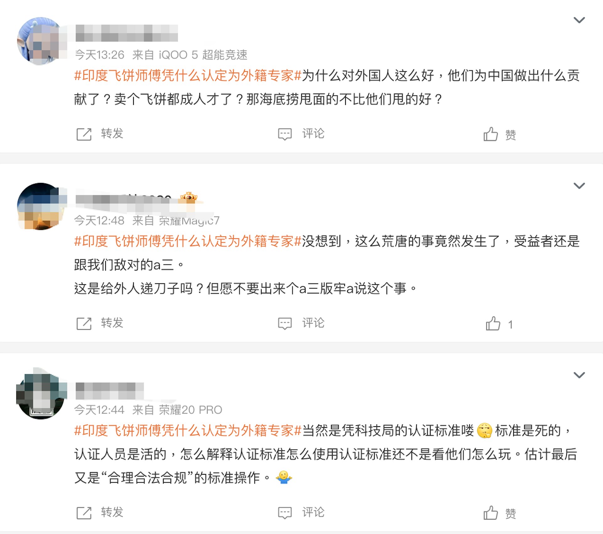 「印度飛餅師傅憑什麼認定為外籍專家」相關話題登上微博熱搜,引發網民熱議。