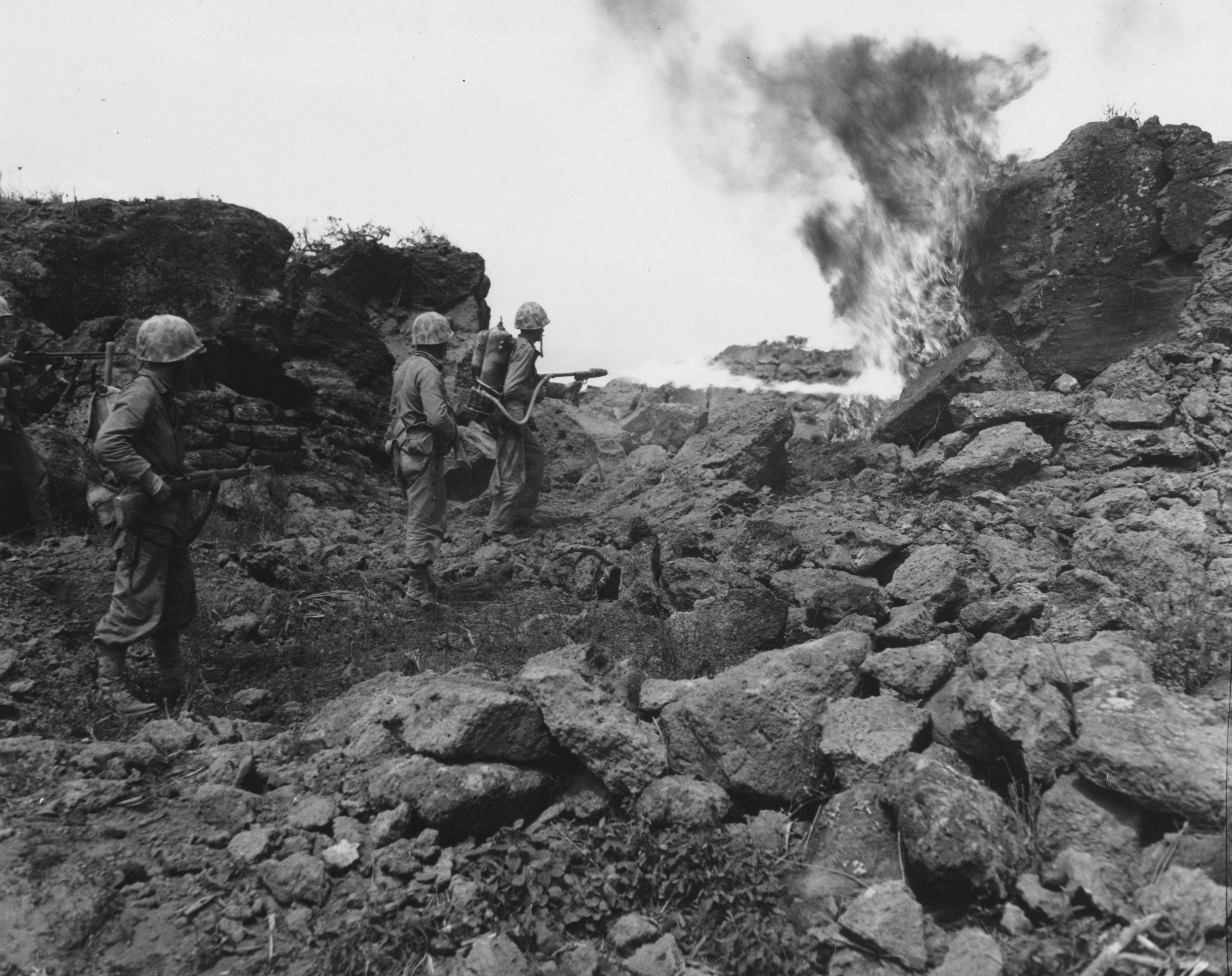4 h5 k3 F; t' ]) A1945年2月,日本硫磺島,圖為美軍在硫磺島上使用噴火器噴向島上一處懷疑有日軍潛伏的洞穴。(美國國家二戰博物館)TVBNOW 含有熱門話題,最新最快電視,軟體,遊戲,電影,動漫及日常生活及興趣交流等資訊。" S# D: _# v0 i+ C