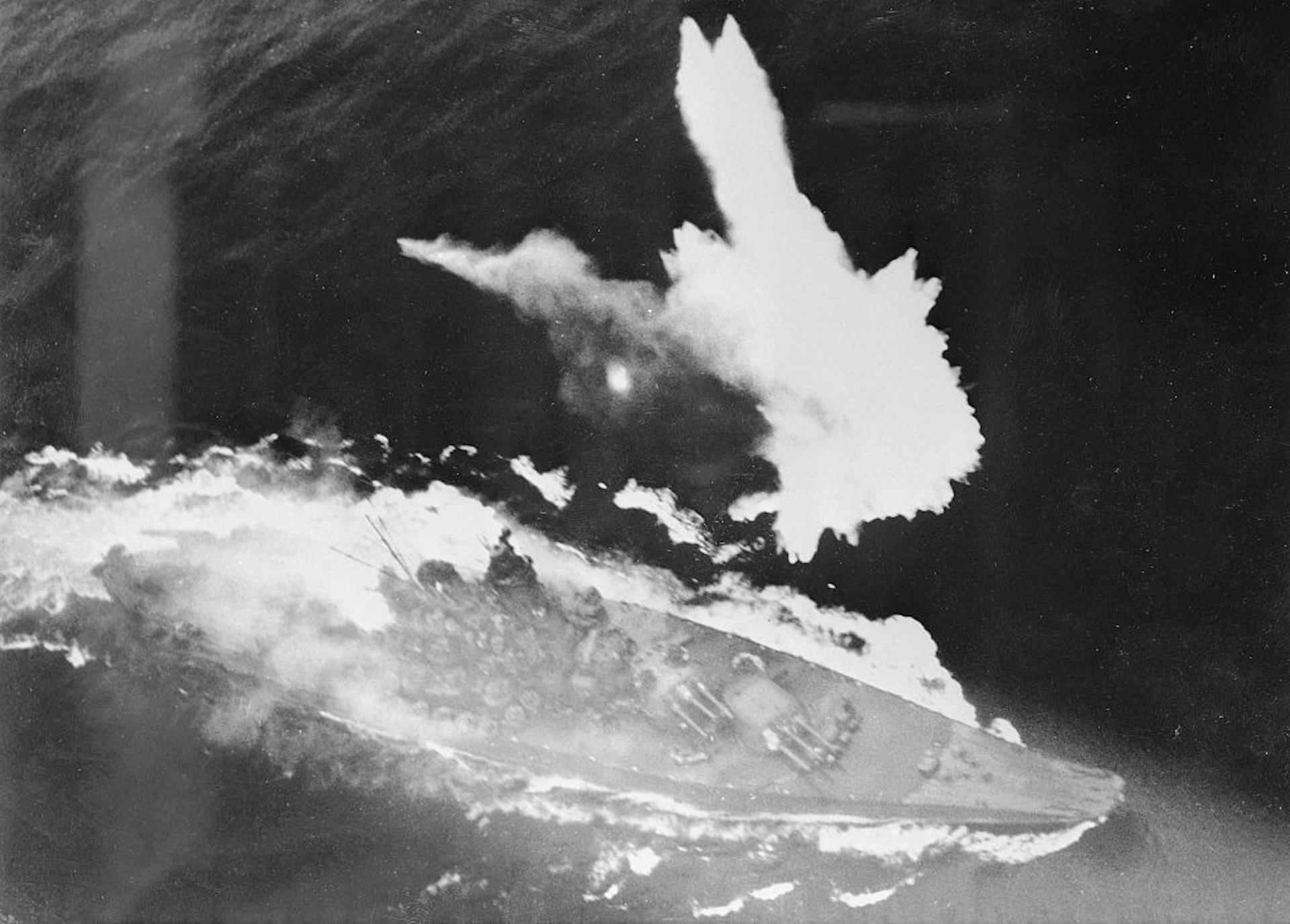 0 n& _' z4 B1 l$ D1 J2 e* s1945年4月7日,日本沖繩,圖為日軍大和號軍艦在與盟軍作戰期間遭攻擊,最終沉沒。(Getty)- v6 G0 @" I- G2 S y