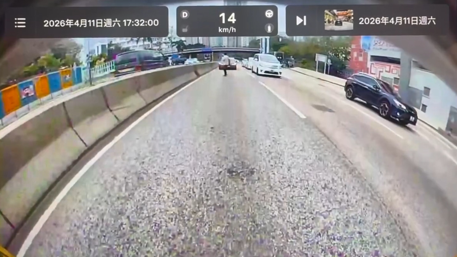 車尾的車Cam拍攝到該名女子毫無懼色,連腳步也沒有加快,只是施施然繼續橫越快線,尾隨車輛見狀亦唯有減速讓她通過。(互聯網)