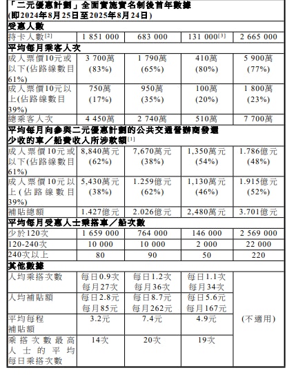 在2024至25年度,政府平均每月需補貼約3.7億元。其中有約48%,即約1.8億元用於補貼承認票價10元以下的車程,餘下52%、1.9億用於補貼10元以上車程。0 q3 C/ W4 ]2 c7 y/ U$ G2 V" A9 }; _; Y