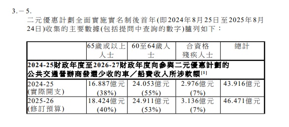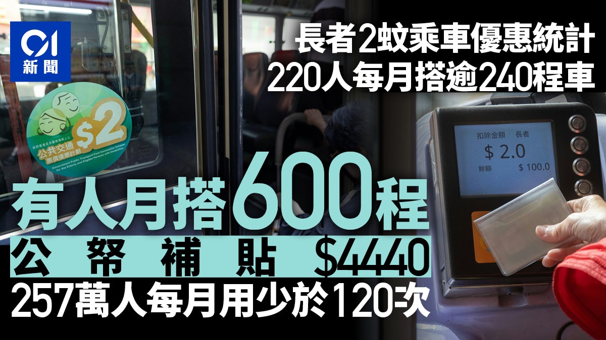 其中,60至64歲人士乘車次數較多,人均每月乘車36次,政府每月的人均補貼額為262元,每程平均補貼額7.4元;合資格殘疾人士人均每月乘車34次,需補貼167元;65歲或以上長者則27次,需補貼85元。