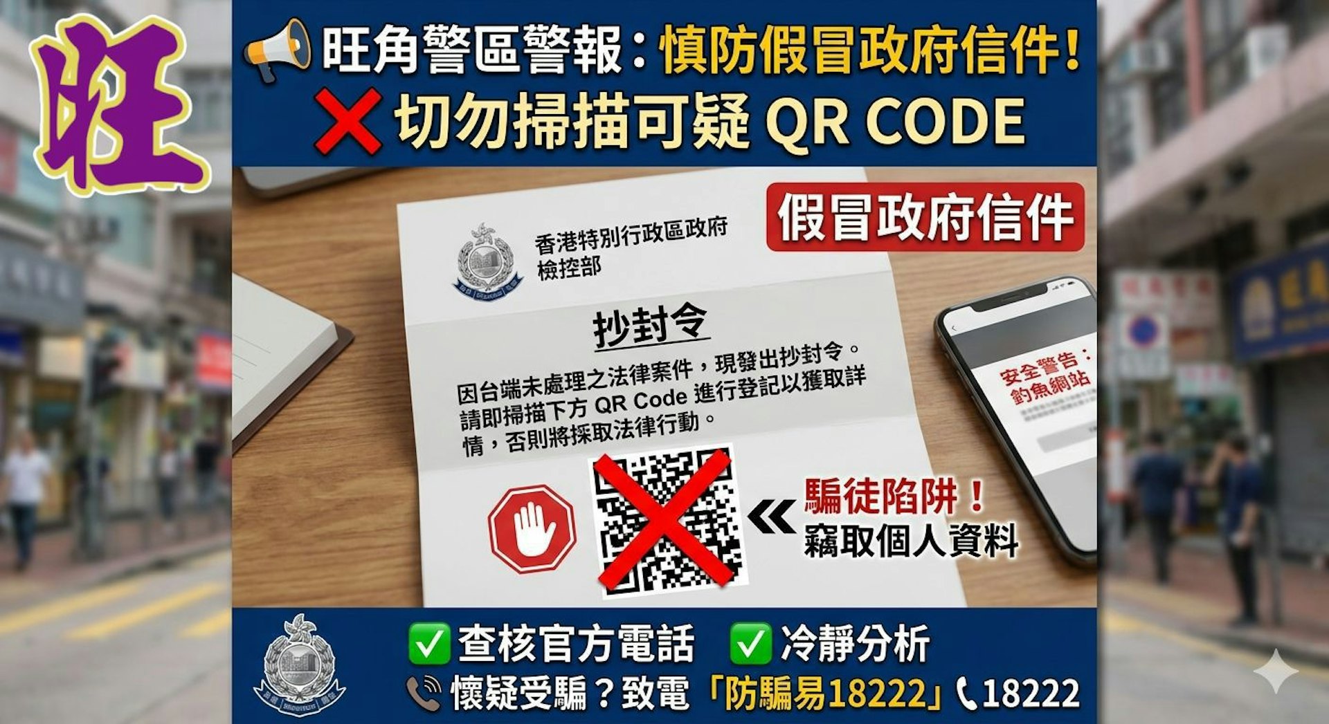 9 F; }6 _3 [+ {! N5 B* g5 D5.39.217.77:8898Facebook「旺角警區」亦發帖提醒巿民,慎防假冒政府信件。(Facebook「旺角警區MongKok District」圖片 )