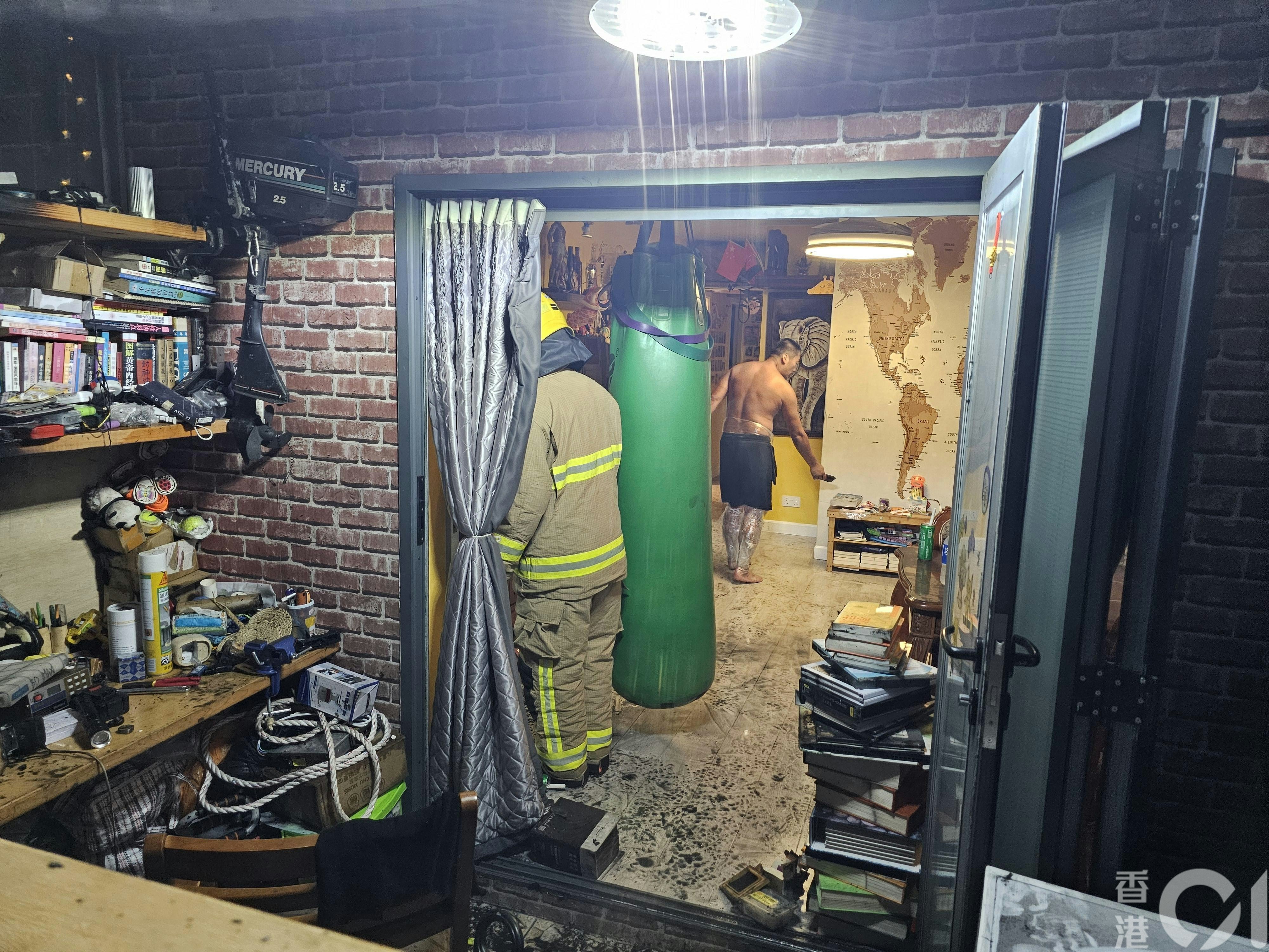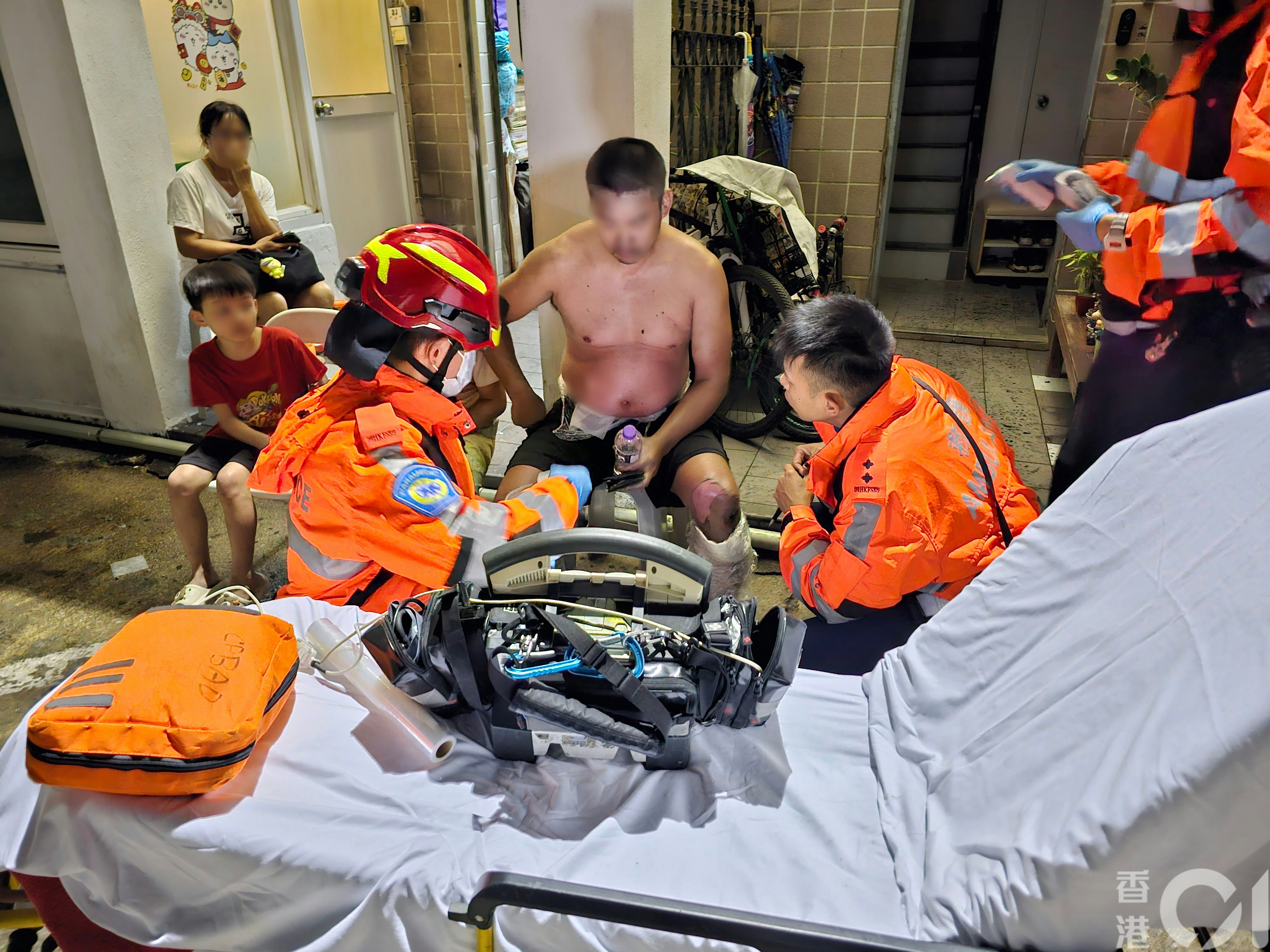 9 {% A& b0 |( J公仔箱論壇男傷者的腹部及雙腿燒傷脫皮,需要包上敷料;消防在單位內調查。(梁偉權攝)公仔箱論壇0 b% K3 C. i& p, t