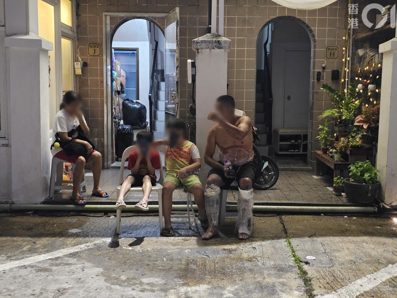男傷者的腹部及雙腿燒傷脫皮,需要包上敷料。(梁偉權攝)tvb now,tvbnow,bttvb: T9 f9 ^7 Q8 @' o/ T) K