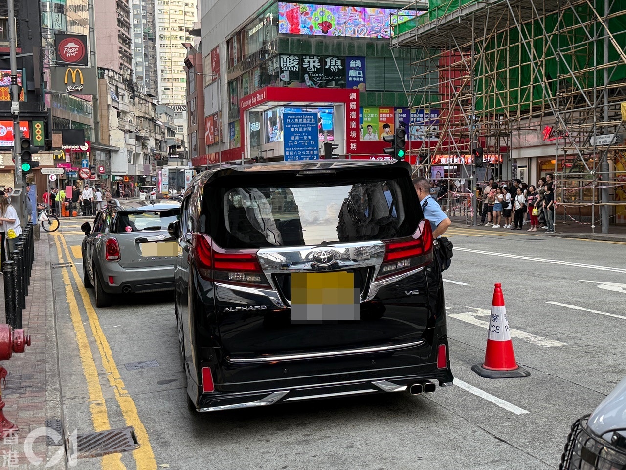 銅鑼灣發生打架案。今日(19日)中午12時許,兩名私家車男司機疑因駕駛態度問題,在駱克道銅鑼灣二期對開大打出手,其中一人更潑水及持電筒狂扑對方,混亂間分別甩拖鞋甩眼鏡,驚動途人報案,最終兩敗俱傷被捕,事後警方封鎖現場調查涉事私家車及粵港牌七人車。
