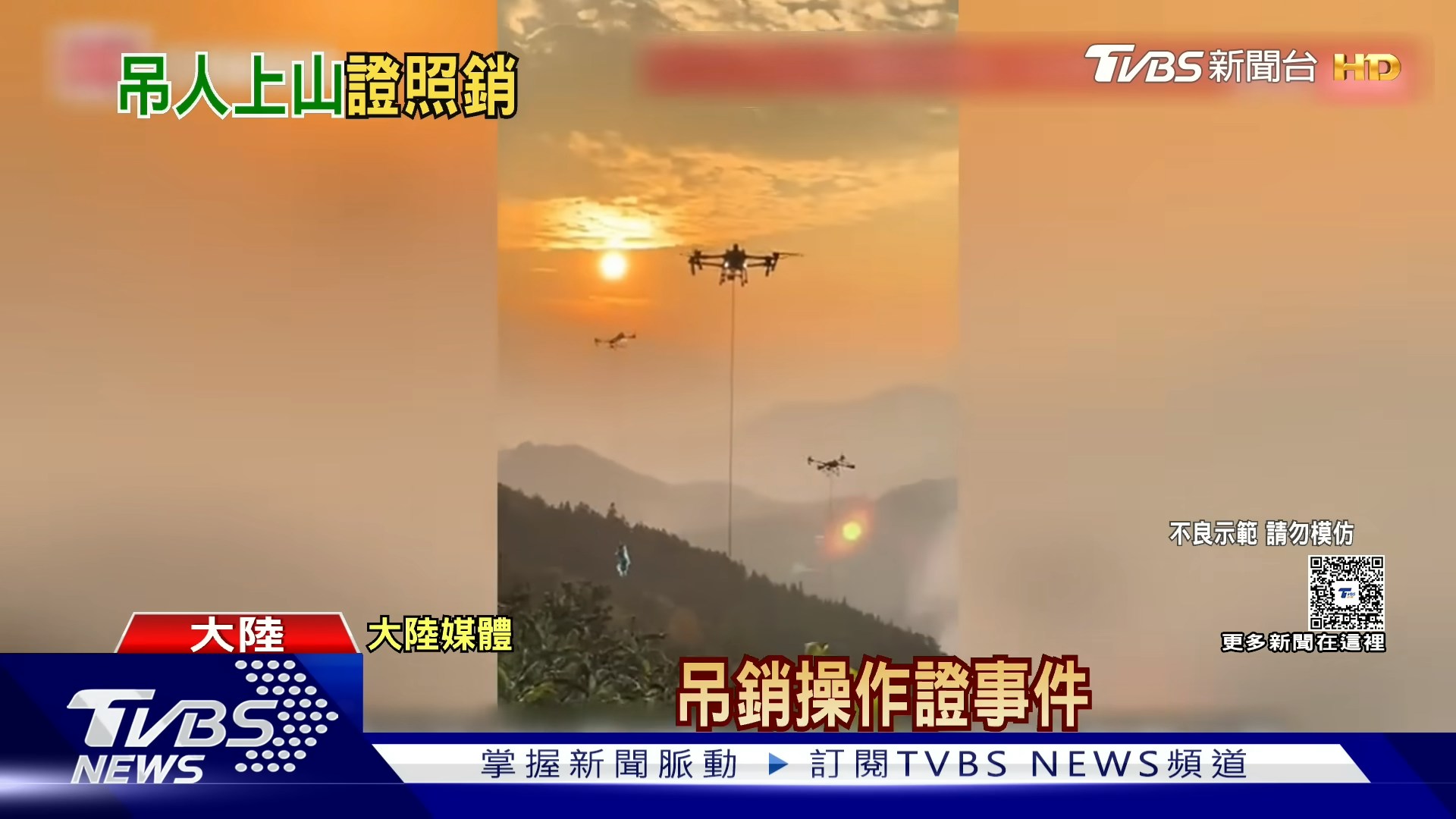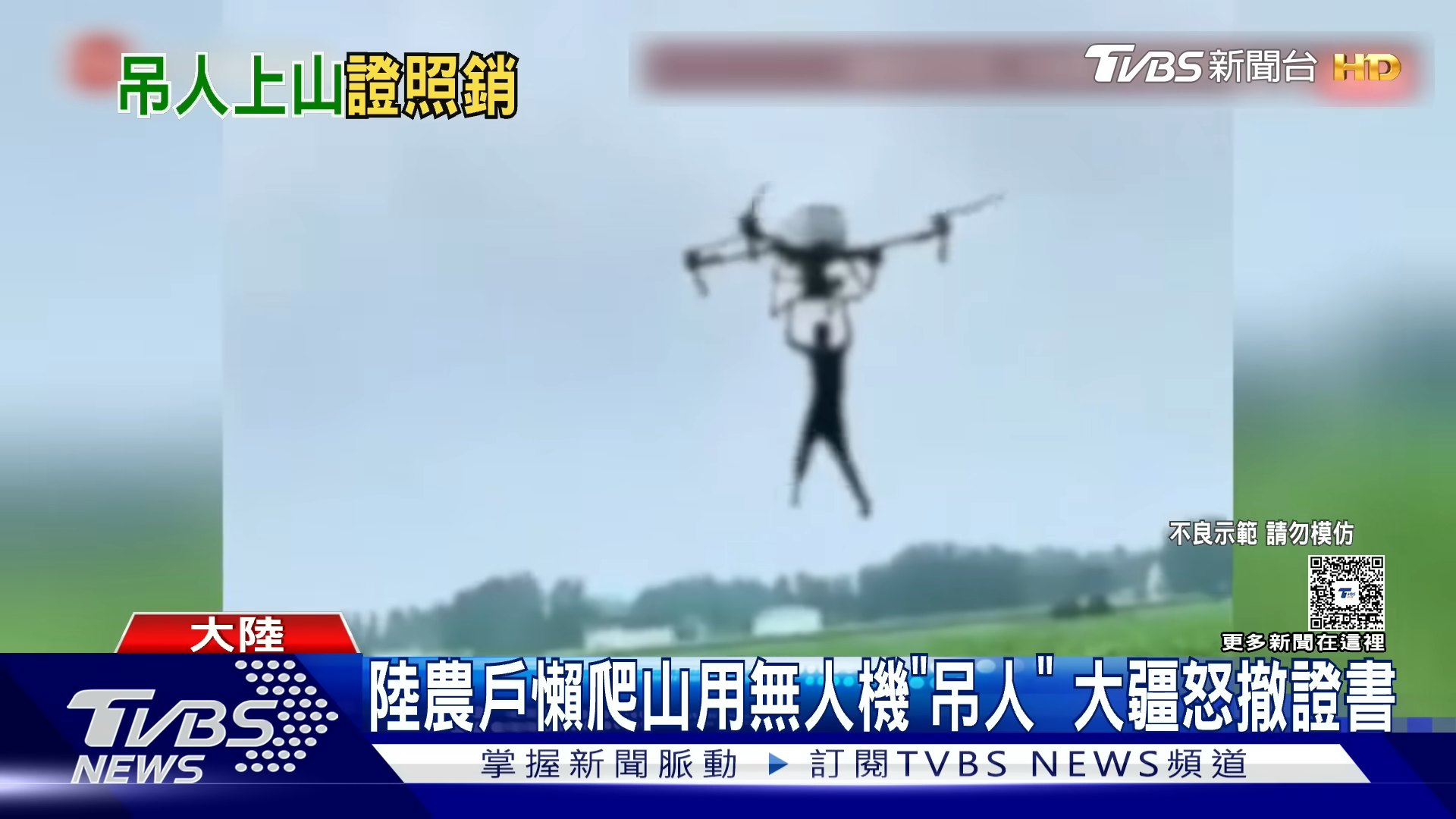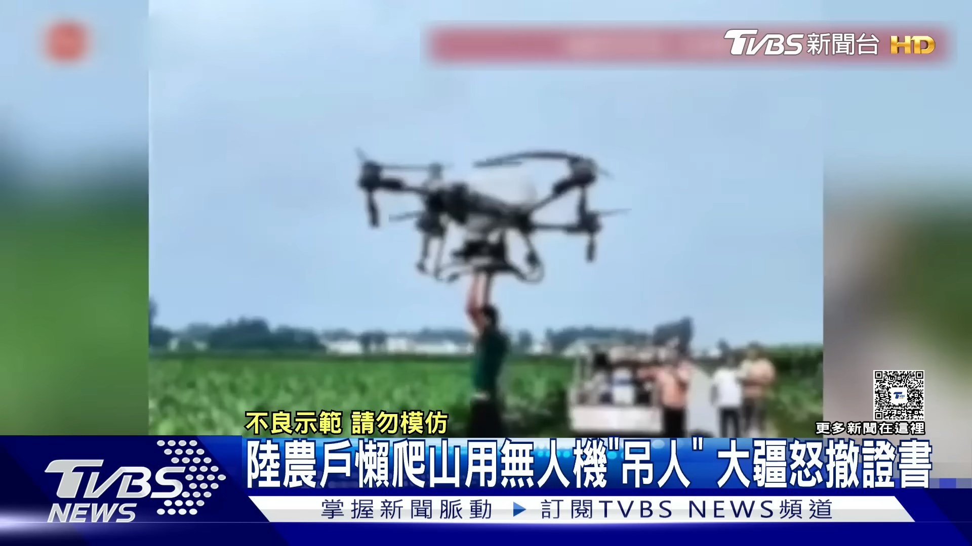 : V2 ?7 |, q w. B3 xTVBNOW 含有熱門話題,最新最快電視,軟體,遊戲,電影,動漫及日常生活及興趣交流等資訊。重慶一處橘子園的鄭姓員工,結束工作後因疲憊不想爬山返程,使用手邊的農用無人機將地勤人員吊掛上山。(截取自YouTube@TVBSNEWS01)