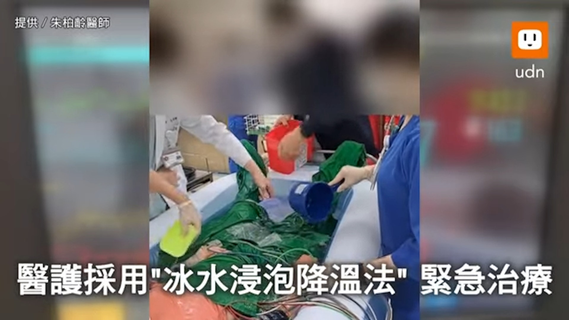 醫護人員讓病人睡在降溫池內,緊急採用「冰水浸泡降溫法」,約經1個多小時搶救,病人體溫降至38.5度才睜開眼睛。(YouTube截圖 / @udn video)公仔箱論壇/ w# M; g8 [7 i6 Y