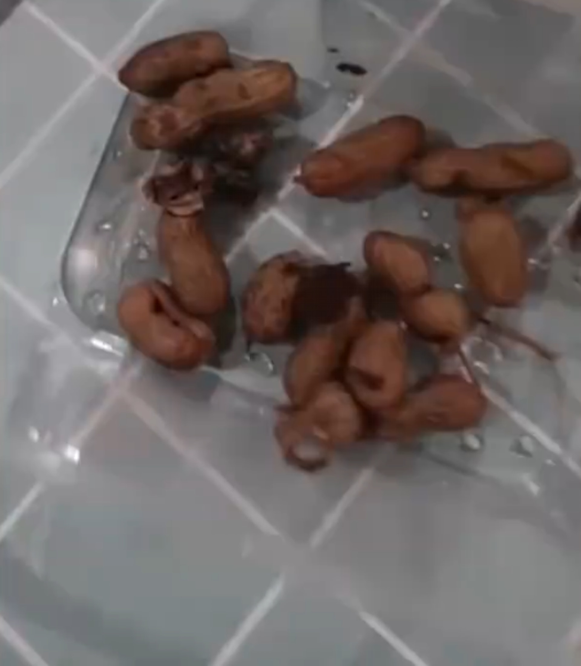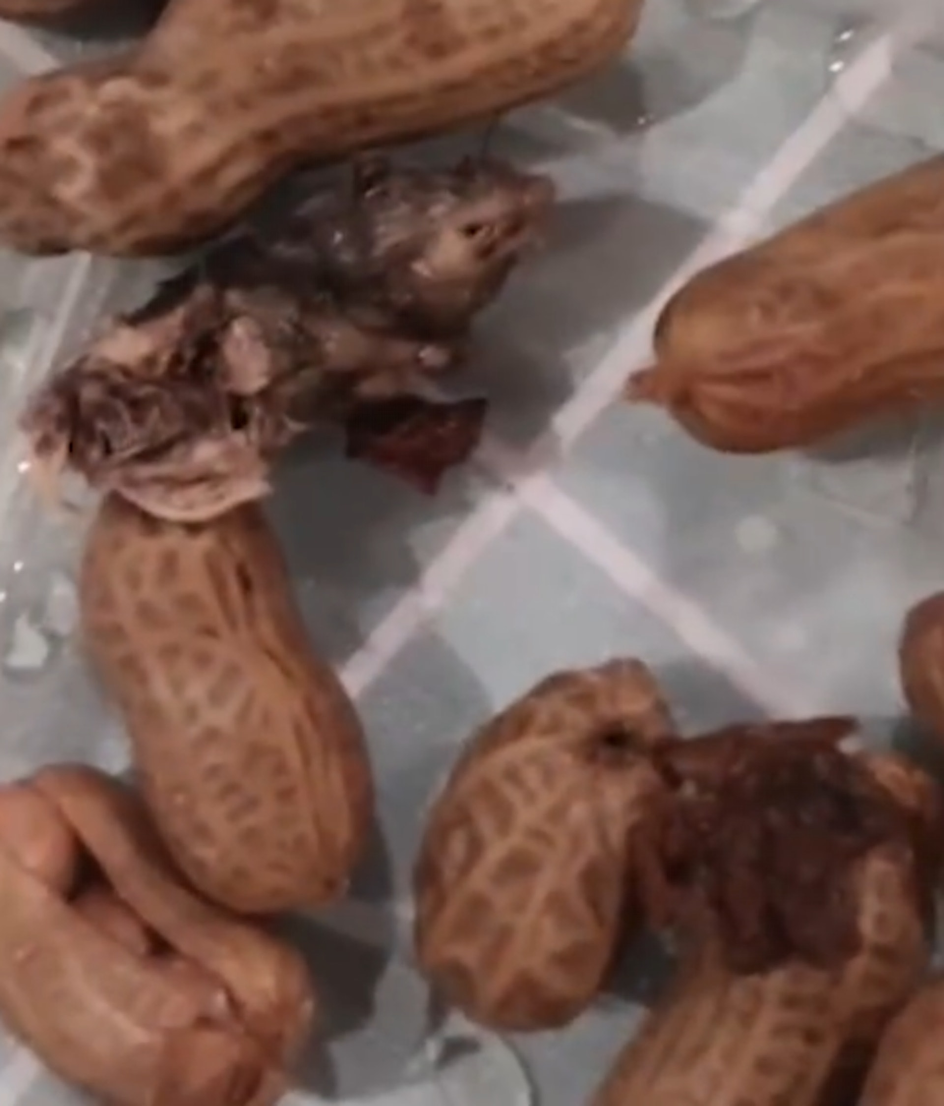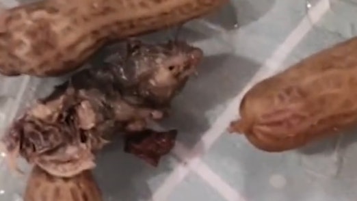 1 V1 v6 B% v& ?, M. b, g4 E5 G, h5 M5.39.217.77:8898浙江紹興的陳女士在當地菜市場購買了一盒水煮花生,快要吃完時發現當中有一隻老鼠頭。(影片截圖)1 j9 F7 I j, w* j