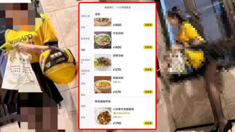 內地網絡近日流傳一間外賣店出售天價食品,一份牛雜粉要價1,400元人民幣(下同)、小炒黃牛肉擂椒飯要1,790元。而且相關圖片顯示,該外賣店會由衣著清涼的美女外賣員送餐,且外賣店只在深夜營業,令外界猜測這家店會提供神秘的上門服務。內地警方今日(5日)回應指,事件不涉提供非法服務,流傳的圖片俱是網絡拼湊得來的失實內容。/ n" e; `& ~: B6 f& b