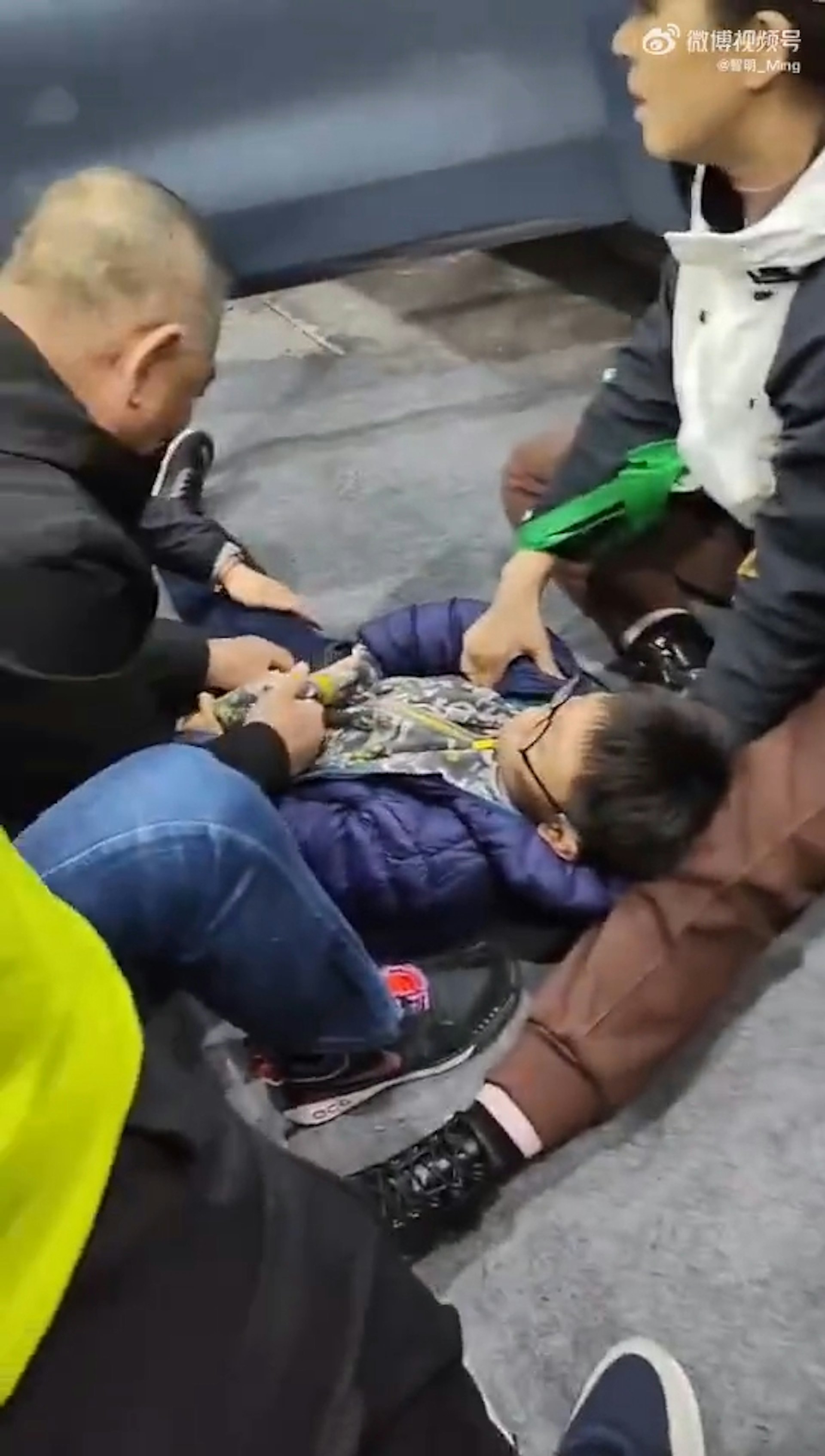 有帶工作證的人員和一名男童倒地不起。(影片截圖)公仔箱論壇, {, ~6 u8 t7 A" v9 e Q) ?" V; o) O