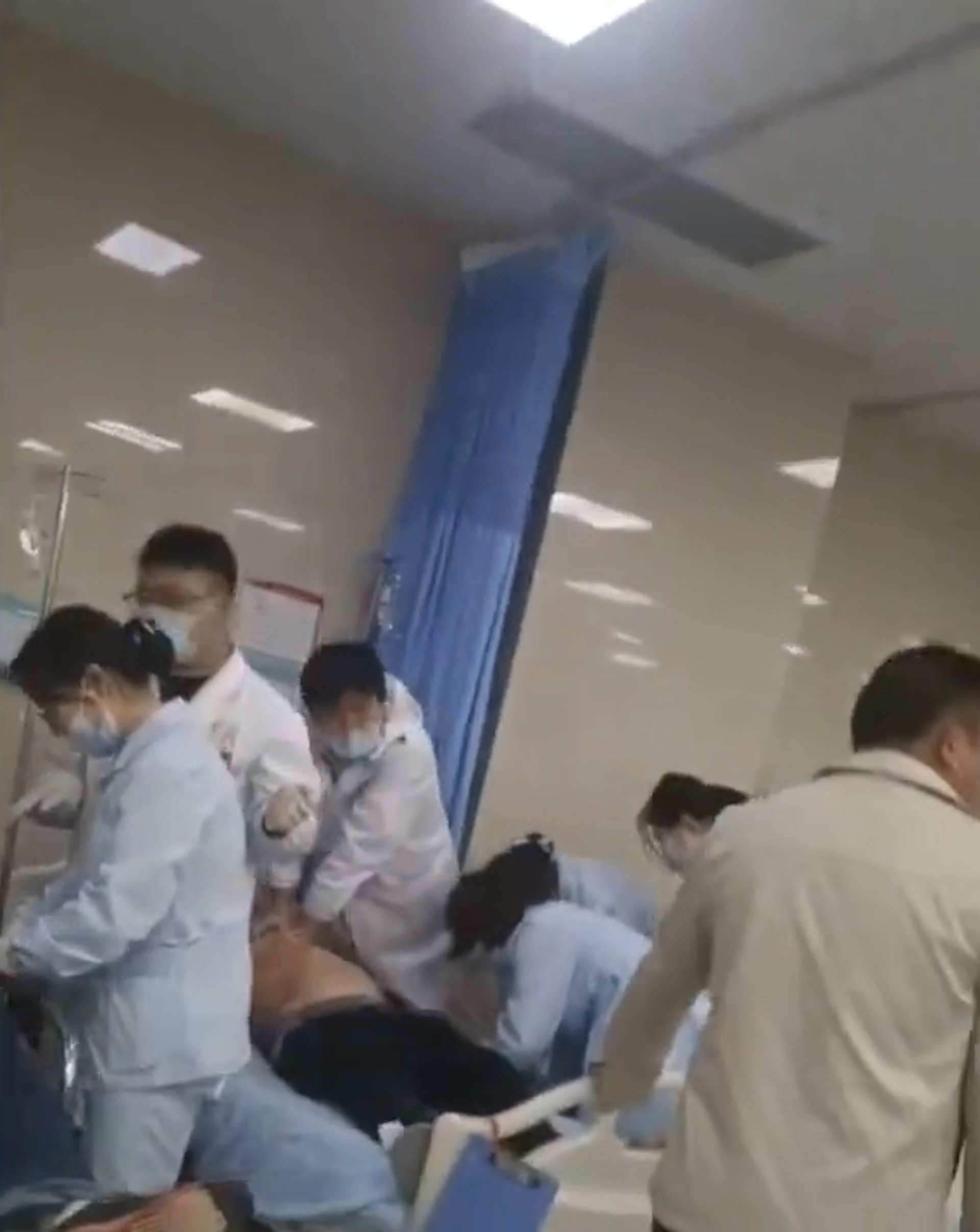 內媒《紅星新聞》引述一名目擊者稱,事發後他心情一直沒有辦法平復,現場受傷的還有醫生,他自己也是差一點就可能遇害。該目擊者拍攝的影片顯示,醫院現場多人流血倒地,一名老人正在試圖攙扶另一名流血倒地的老人。0 K3 G5 i2 ~. O3 Z5 r