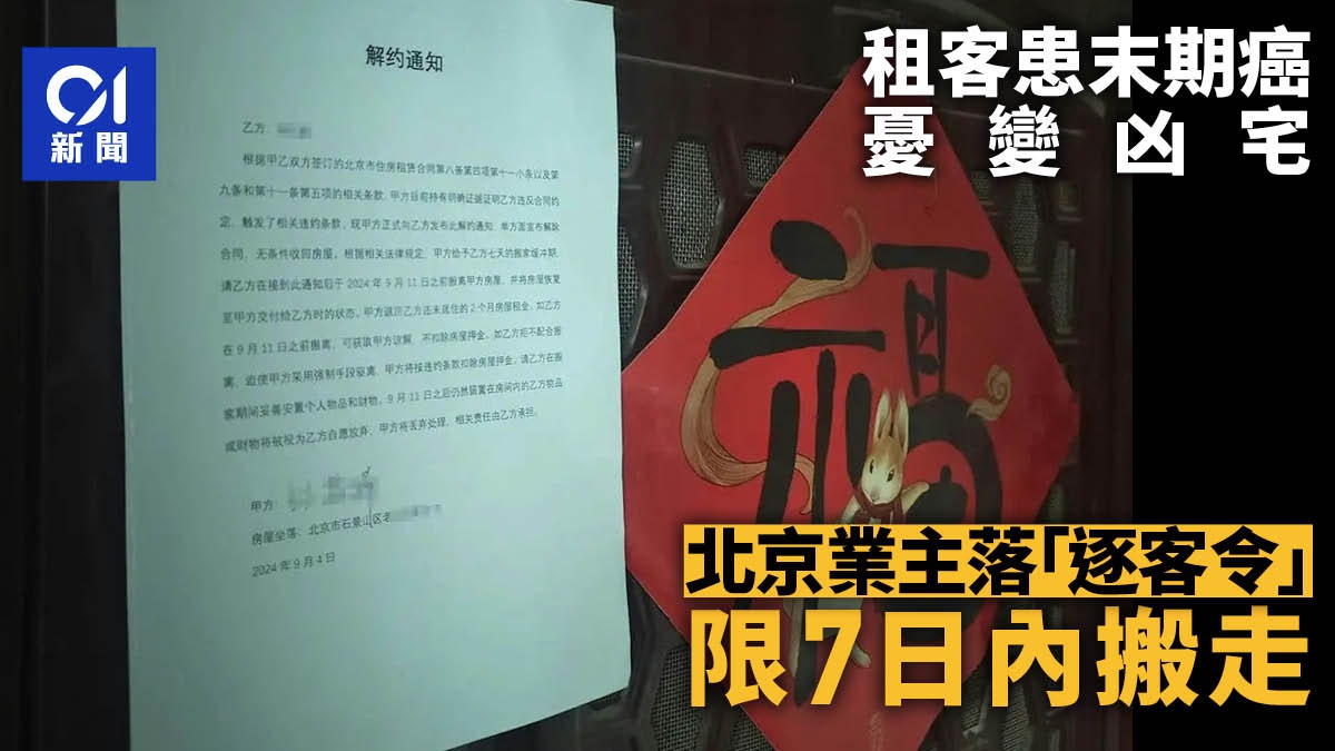 患有末期癌症的王女士與丈夫租住在北京,但業主張先生認為對方在簽約時隱瞞病情,擔心該單位變成「凶宅」,遂要求她在7日內搬離。她表示,租住期間積極配合業主約人上門看房(睇樓),丈夫也同意提前搬離,但張先生拒賠違約金。5.39.217.77:88984 t( T$ T, n& k/ q" h; [