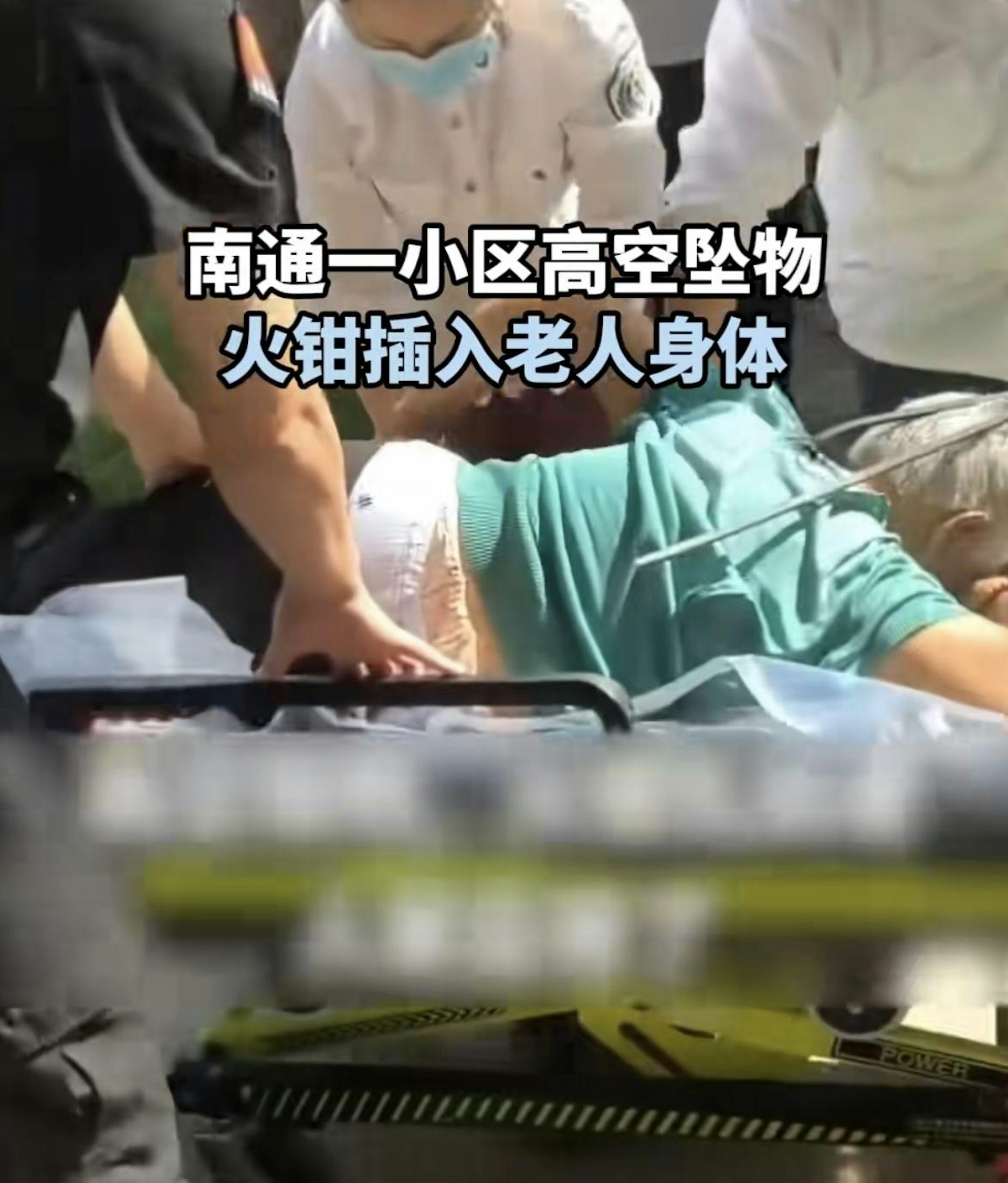 江蘇南通一老人被高空墜落火鉗扎傷去世。(抖音平台圖片)