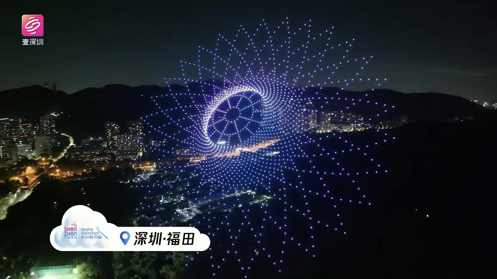 深圳「天空之城 大有可能」全城萬架無人機表演。(直播截圖)