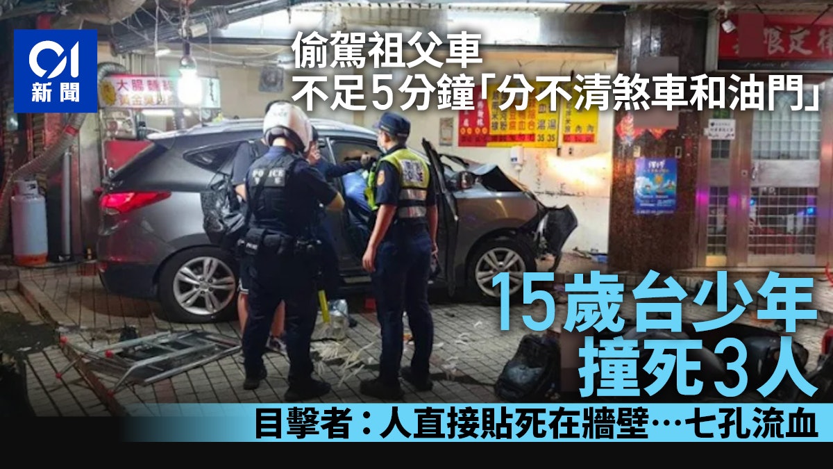 台北市內湖區10月17日發生少年撞死3人的悲劇,一名15歲曾姓少年偷開祖父的車上路不到五分鐘,卻因會車緊張「分不清煞車和油門」,失控撞進路旁小吃攤,造成2名客人和1名騎士死亡。有目擊者在目睹事故現場受到驚嚇,稱車子撞擊力道強大,直接把人撞到貼死在牆上。