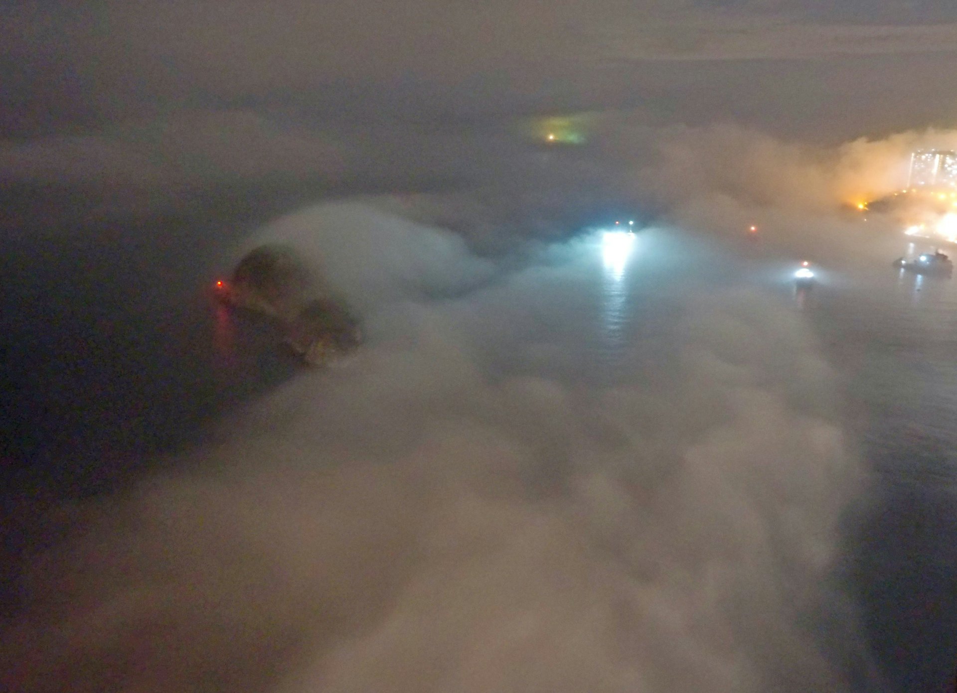: a6 `3 e" Y' u( \3月2日一場大海霧由下午延續至晚上,在21:53至21:57在鴨脷洲拍攝到南區霧景。(Shirley C C Chan攝及提供/Facebook專頁社區天氣觀測計劃 CWOS圖片)
