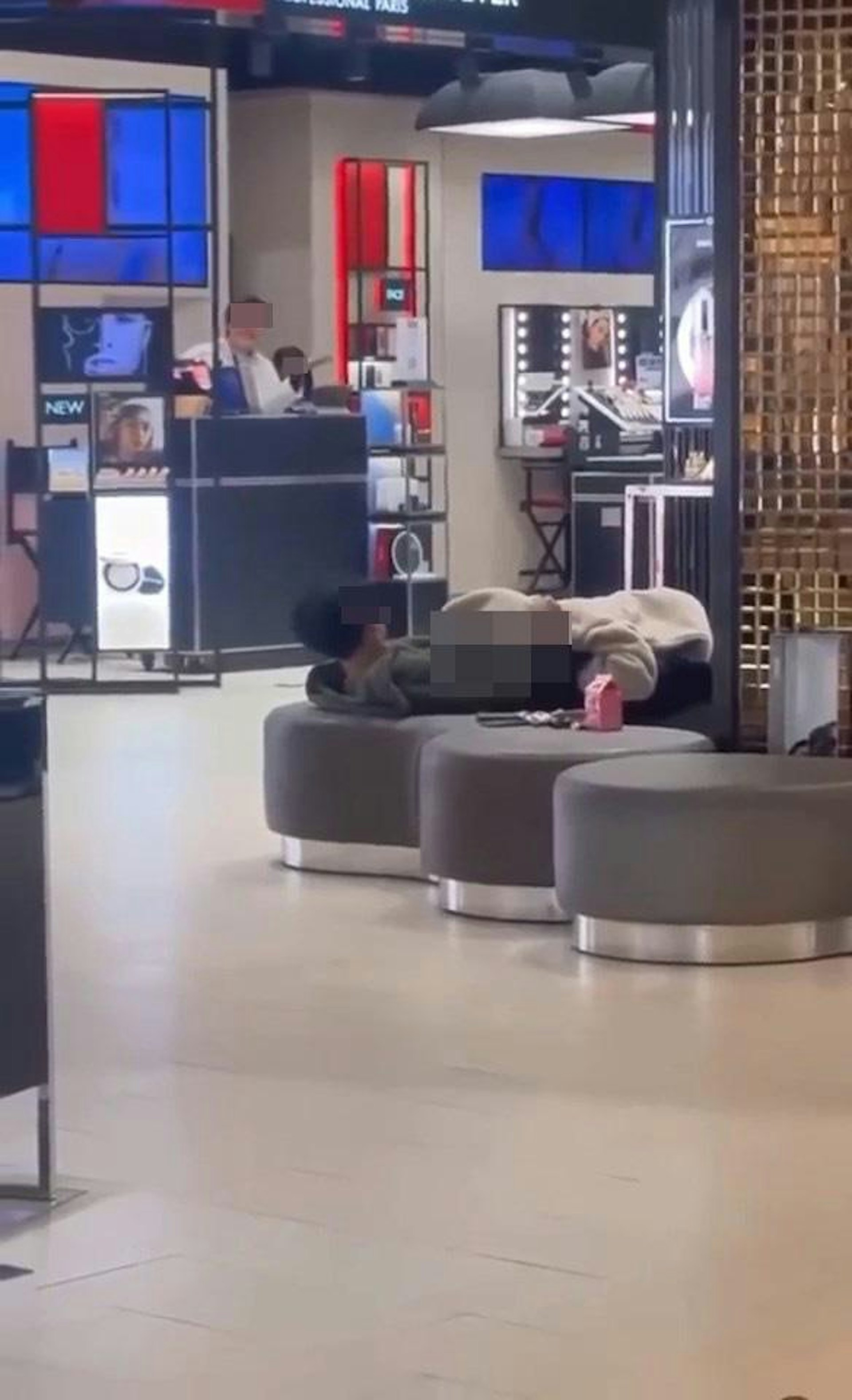影片長27秒,見到商場中央沙發區,有1對年輕男女正當眾進行不雅動作,當中男生躺在圓凳上,穿連帽衛衣的女生則趴在男生身上,用帽子蓋頭做出「口交」動作,男生則狀甚激動,附近店舖櫃枱的銷售員都看得目瞪口呆。