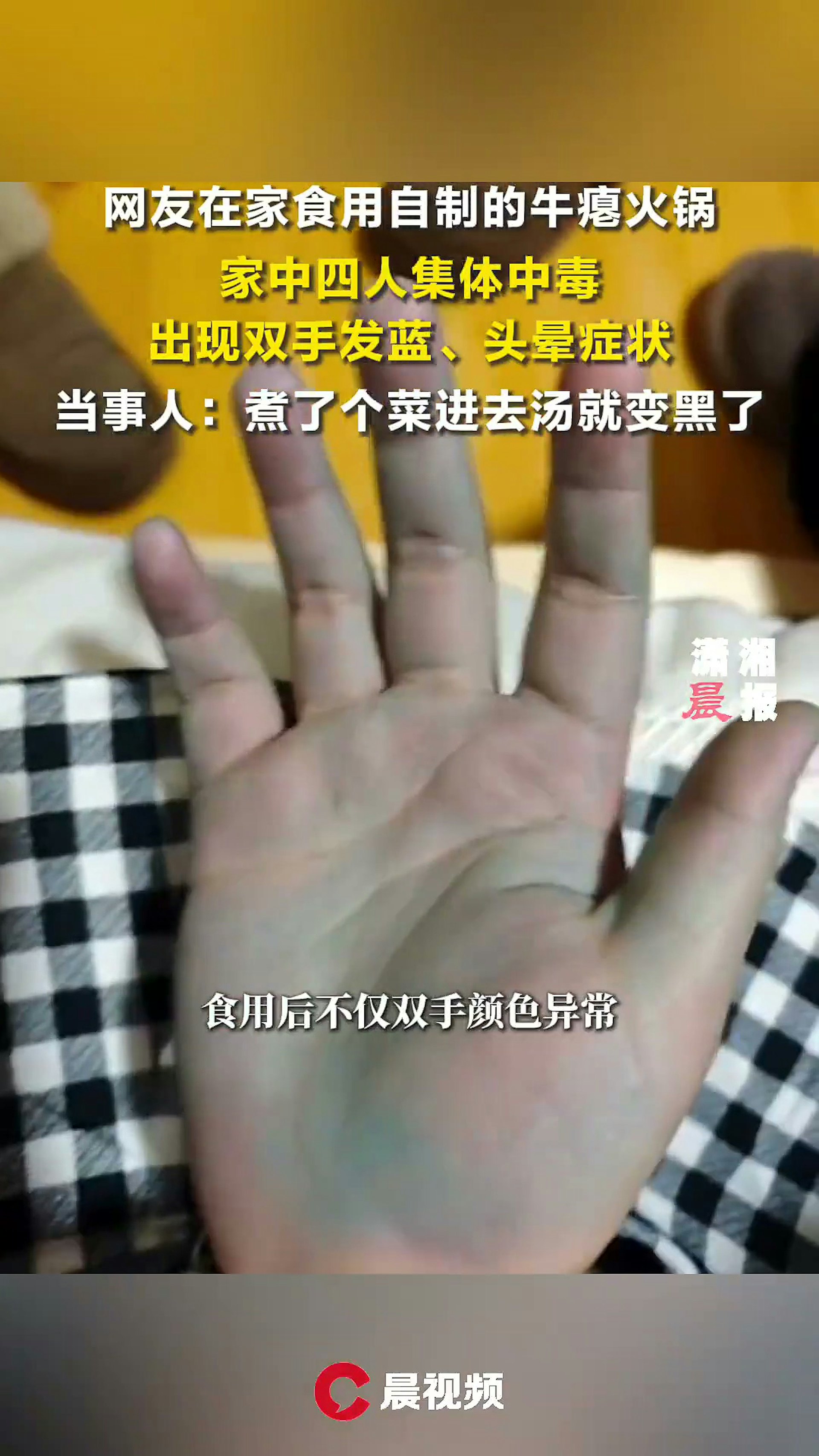 $ b& W) l8 n, V" _8 g1 q公仔箱論壇四川省成都市近日發生一起離奇中毒事件,一名女子與家人在家中食用自製「牛癟火鍋」,4人陸續出現頭暈、嘔吐等症狀,甚至有人「雙手變藍」,緊急送醫治療。(截取自微博@瀟湘晨報)7 M9 o) P- N4 {6 q$ P& | O