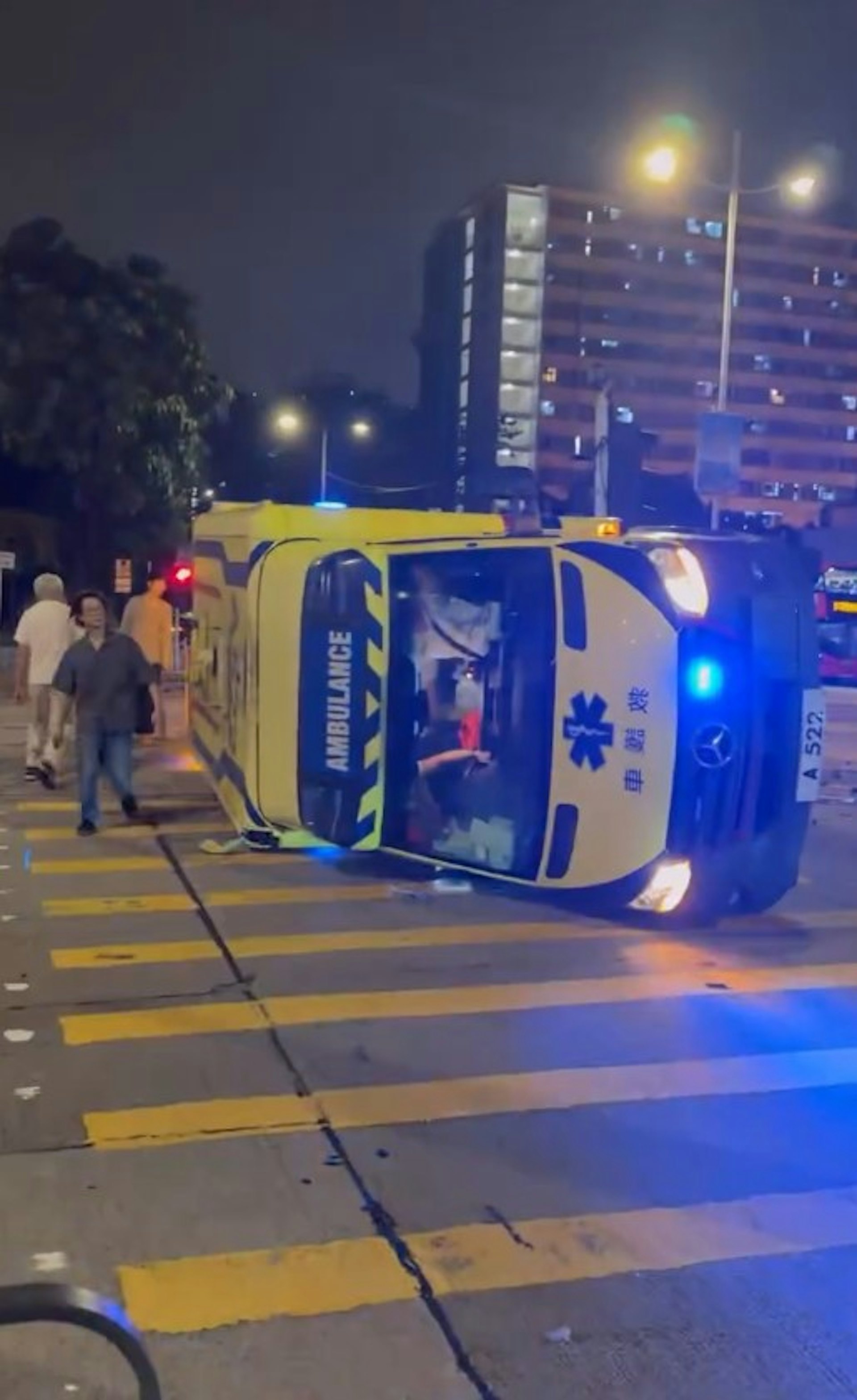 救護車被撞至翻側,多名街坊協助受傷救護員脫困。其他消防及救護員隨後到場協助同袍。(網上圖片)TVBNOW 含有熱門話題,最新最快電視,軟體,遊戲,電影,動漫及日常生活及興趣交流等資訊。3 {5 m' m, f1 ~. b( {( S6 O4 u$ i4 w