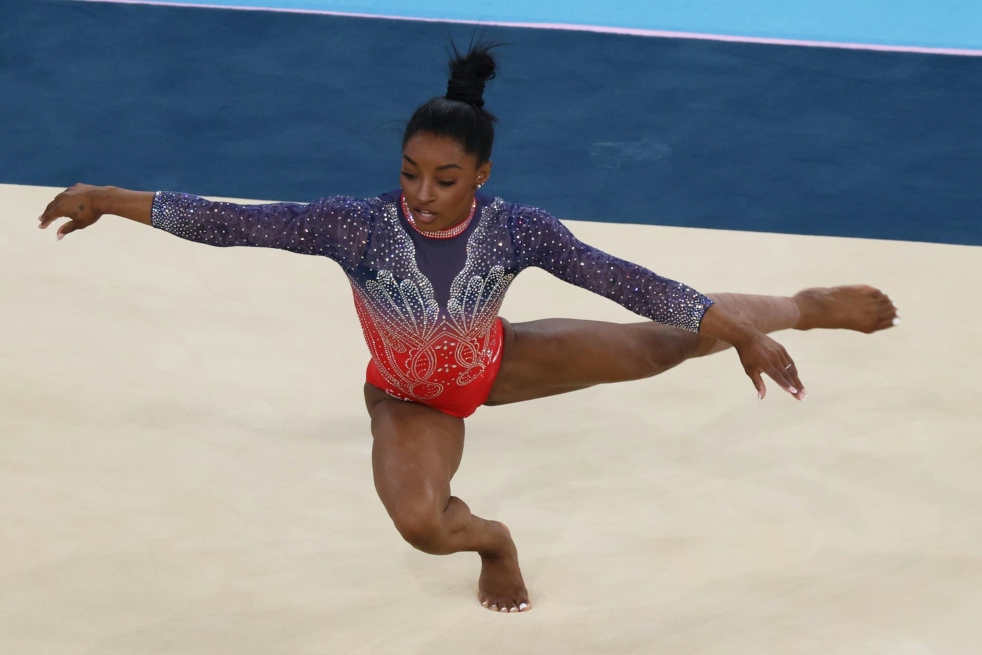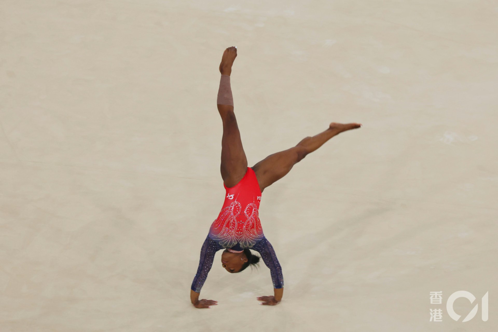 ! Z$ `; h% B8 z Q& A公仔箱論壇巴黎奧運:比拉絲出戰自由體操。(01體育記者袁志浩攝)