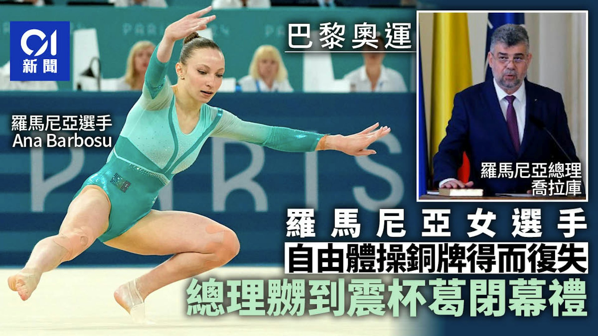 羅馬尼亞選手Ana Barbosu出戰巴黎奧運女子體操項目,原本獲得銅牌,惟第五名的美國隊提出上訴並獲裁判受理,最終美國取代羅馬尼亞成為第三,Barbosu因此痛失獎牌。事件引起羅馬尼亞總理喬拉庫(Marcel Ciolacu)不滿,決定杯葛出席奧運閉幕禮。' d0 S0 `, {0 V