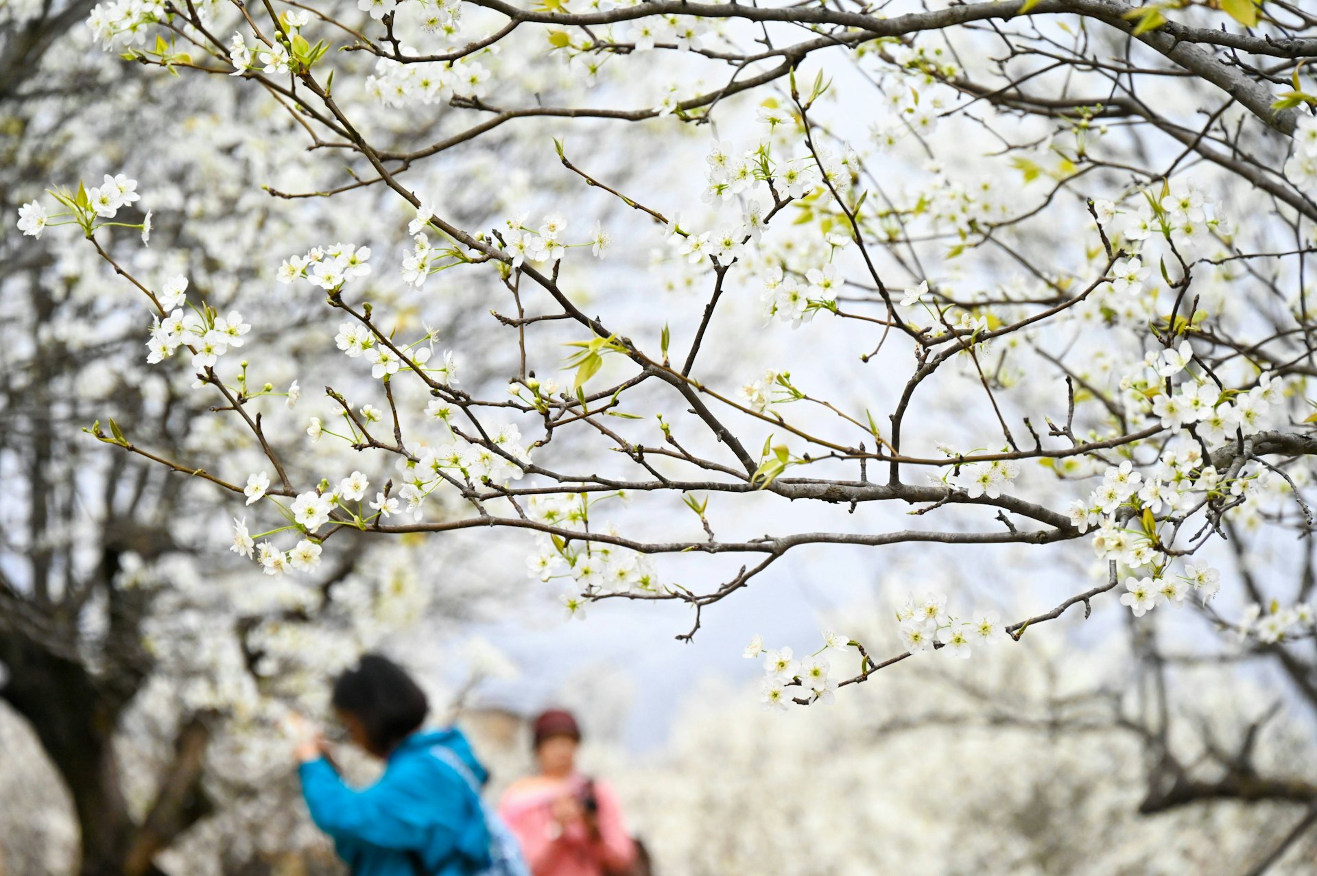 ' j2 i4 }8 {' m8 Ltvb now,tvbnow,bttvb遊客前往西江鎮高山茶田圍村梨花園踏青賞花 張曉欣 攝