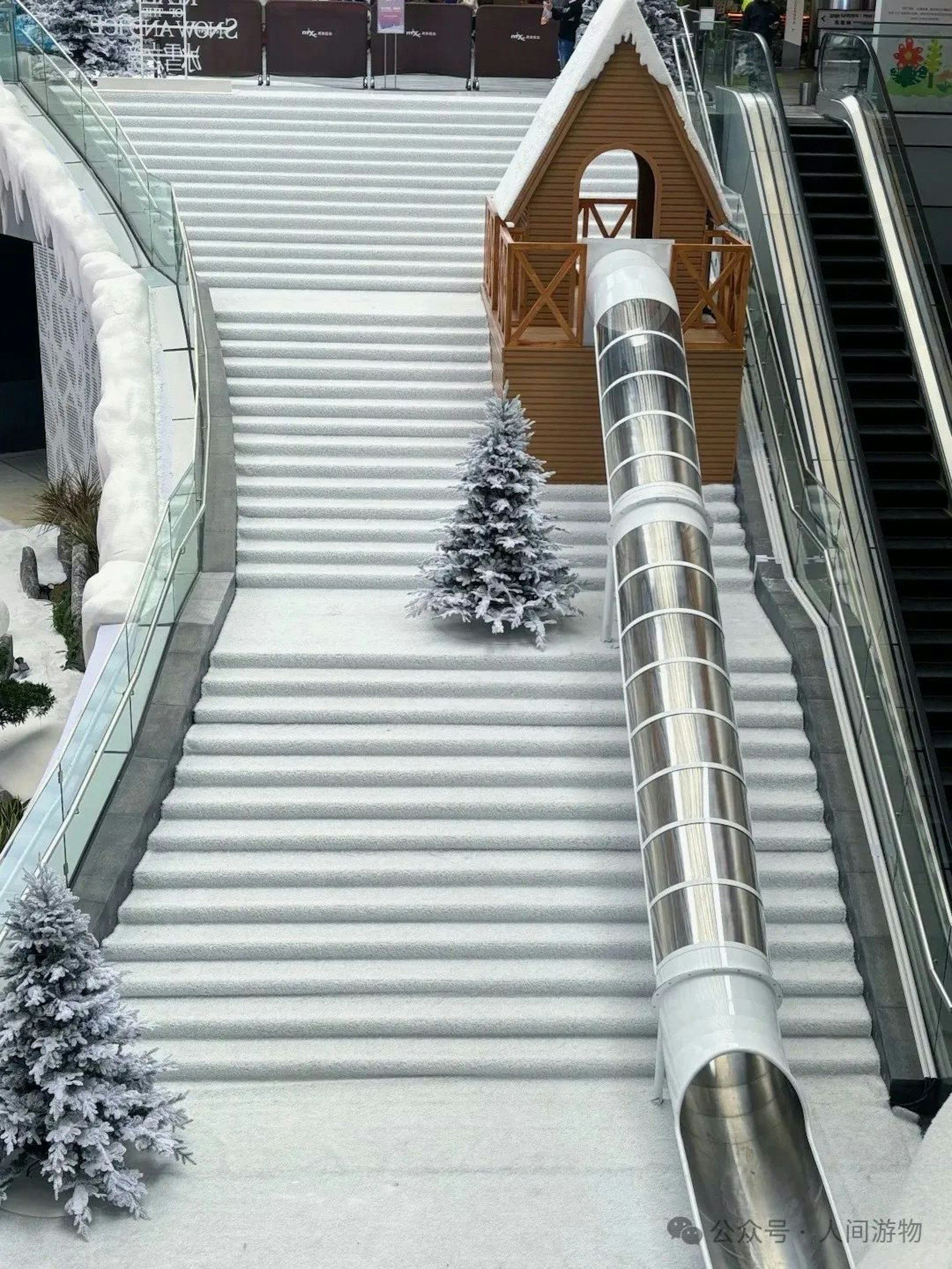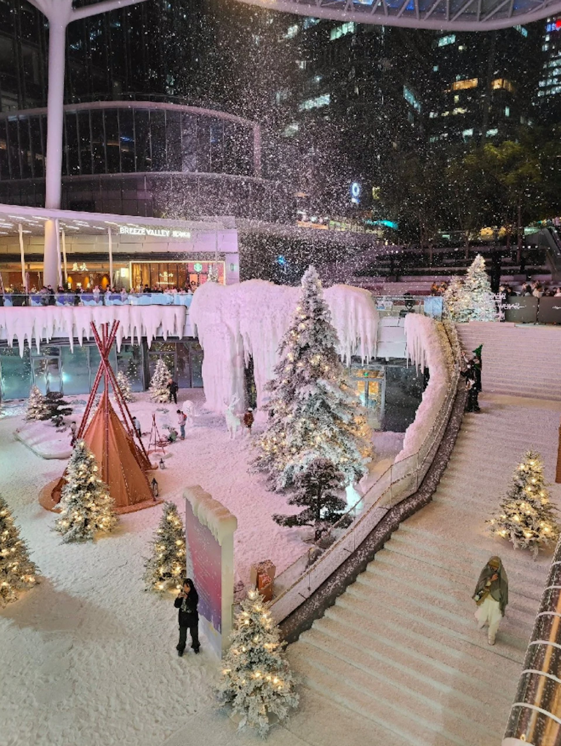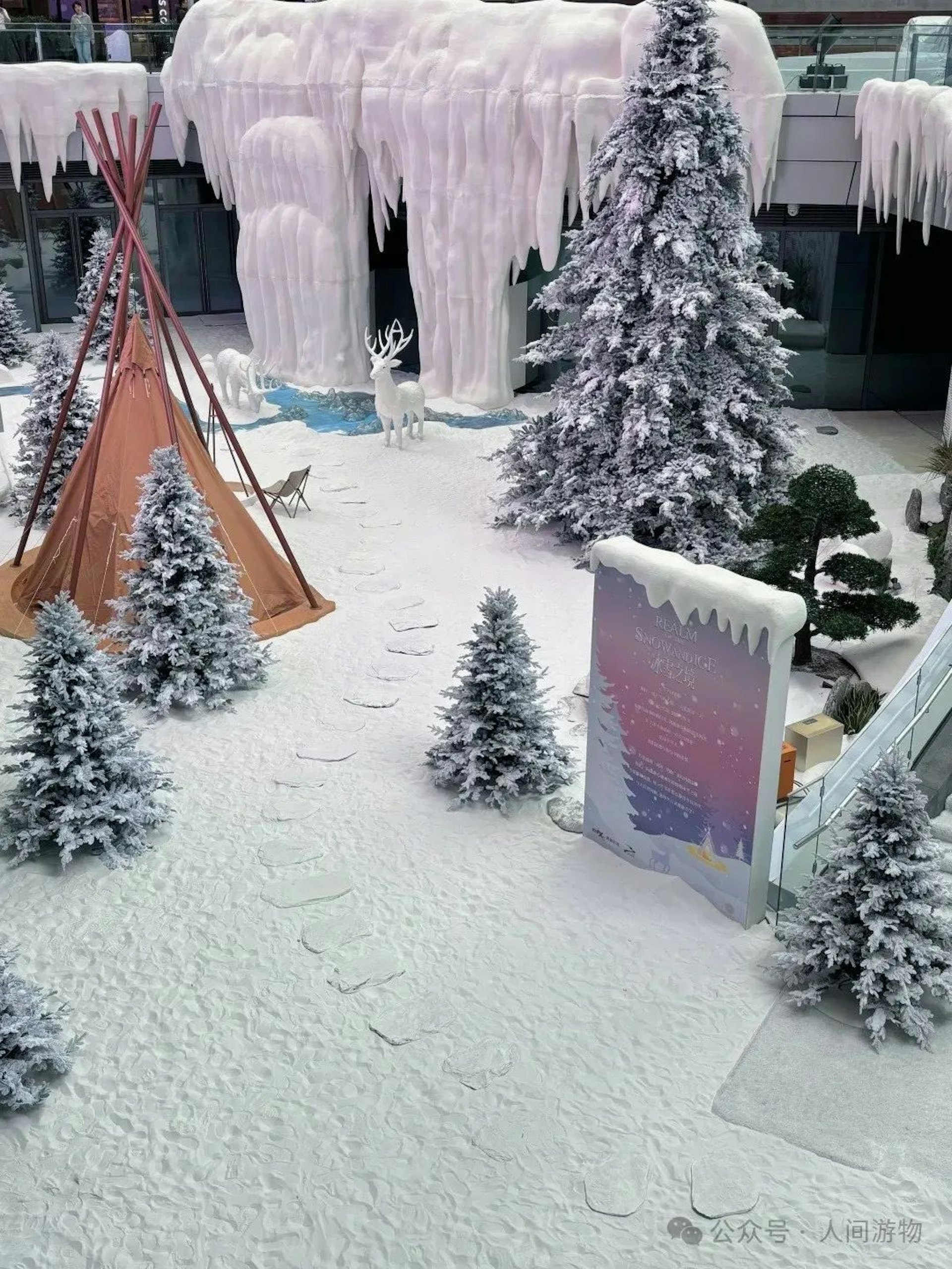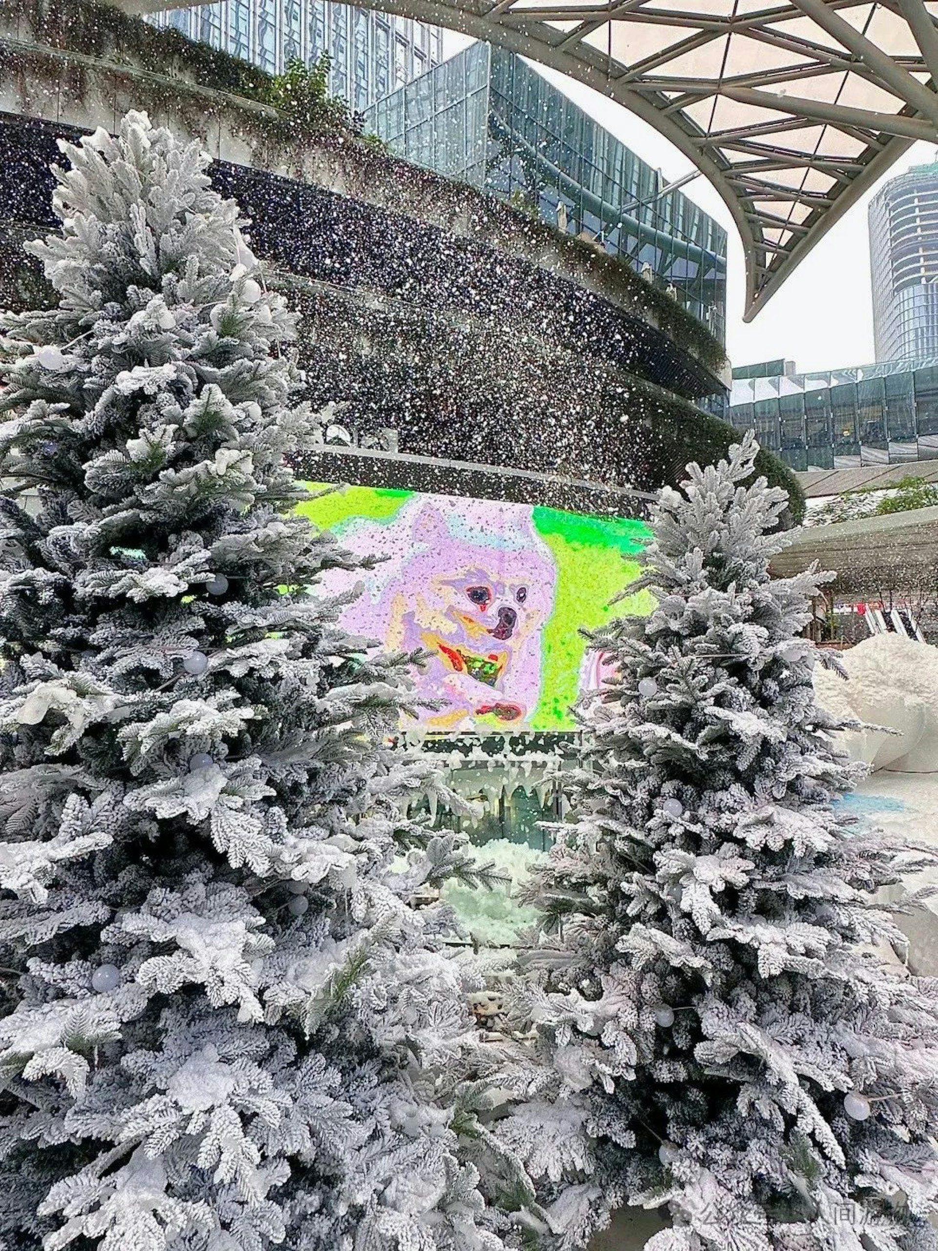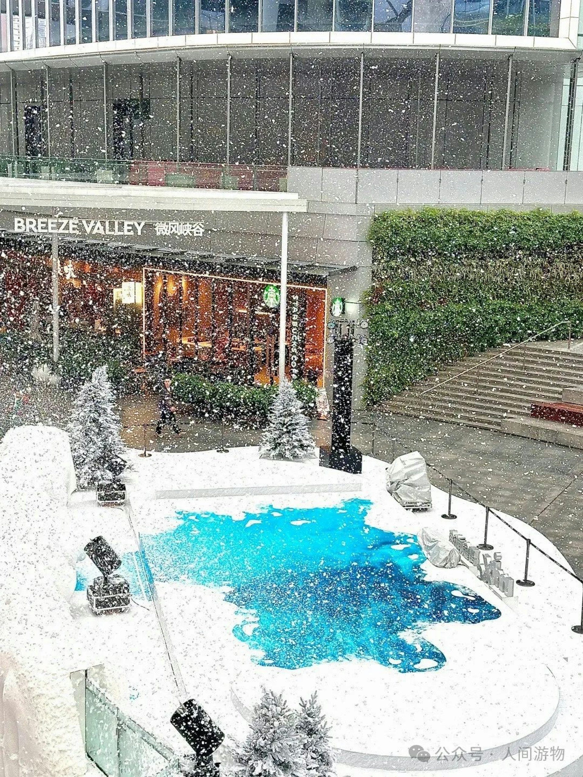 / g! }0 }. T u. Q3 N' utvb now,tvbnow,bttvb「萬象前海」商場打造了一場規模龐大的冰雪展,現場有噴灑人造雪特效。(小紅書)