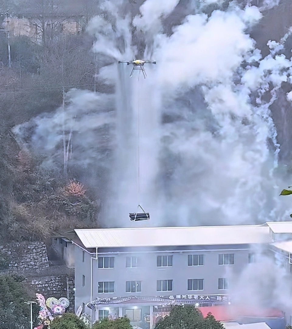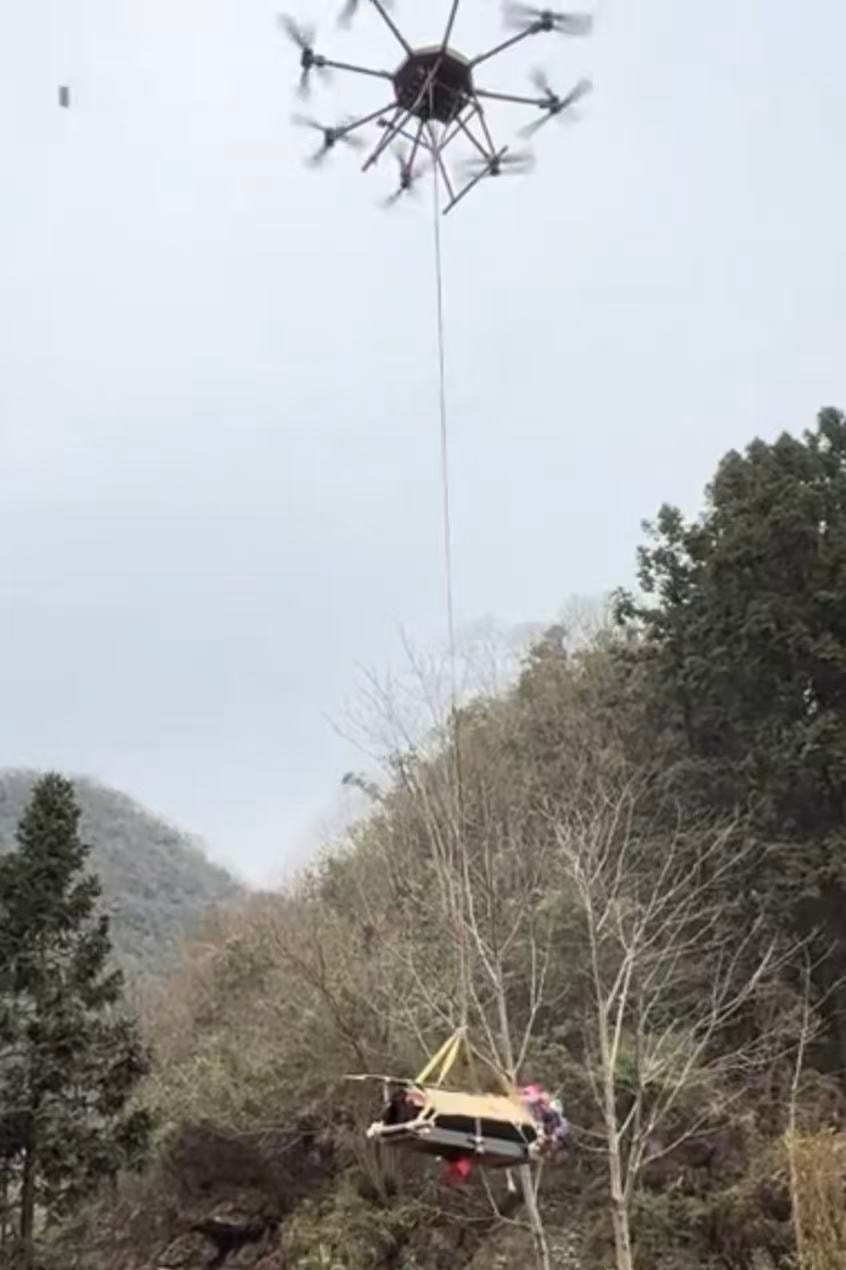 ) ]3 w2 F& q% U$ A& z& r近日,貴州遵義一家庭用無人機運棺材上山土葬的事件引發網民關注。網民發佈的影片顯示,一架無人機吊著一副棺材飛往山頂墓地。據悉,棺材重達467公斤。