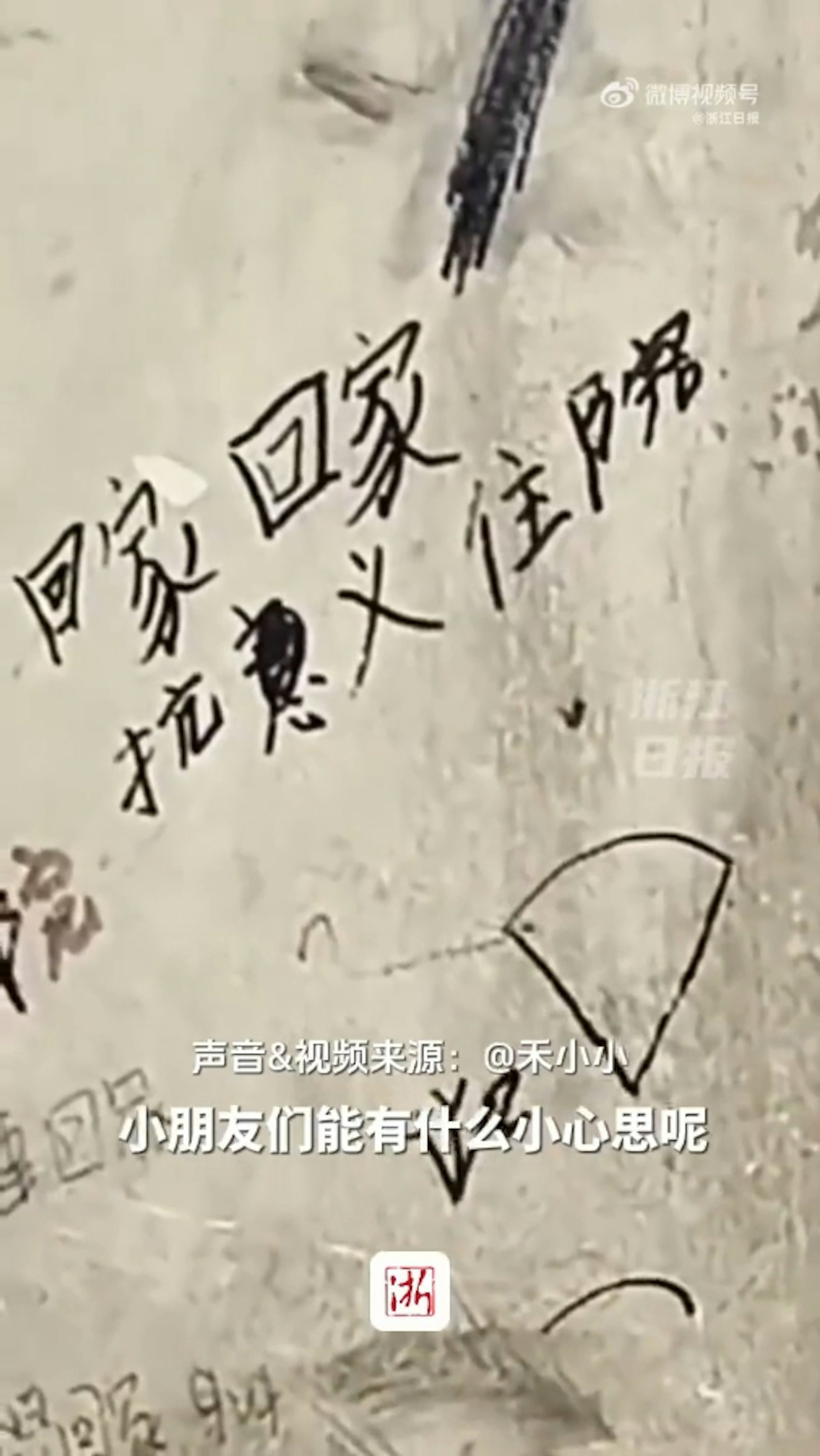 這些塗鴉讓目睹到的民眾相當不捨,此景也被一名網友錄下後,將影片上傳至網路,引起迴響。(微博@浙江日報)