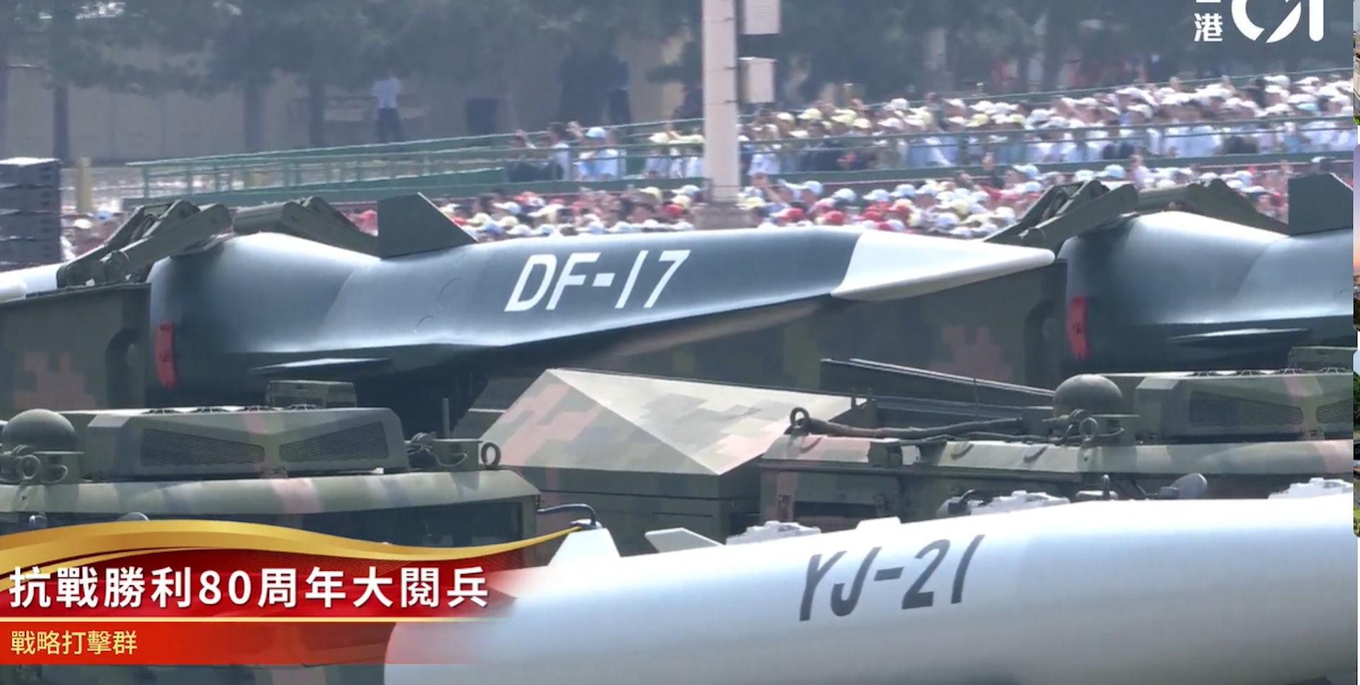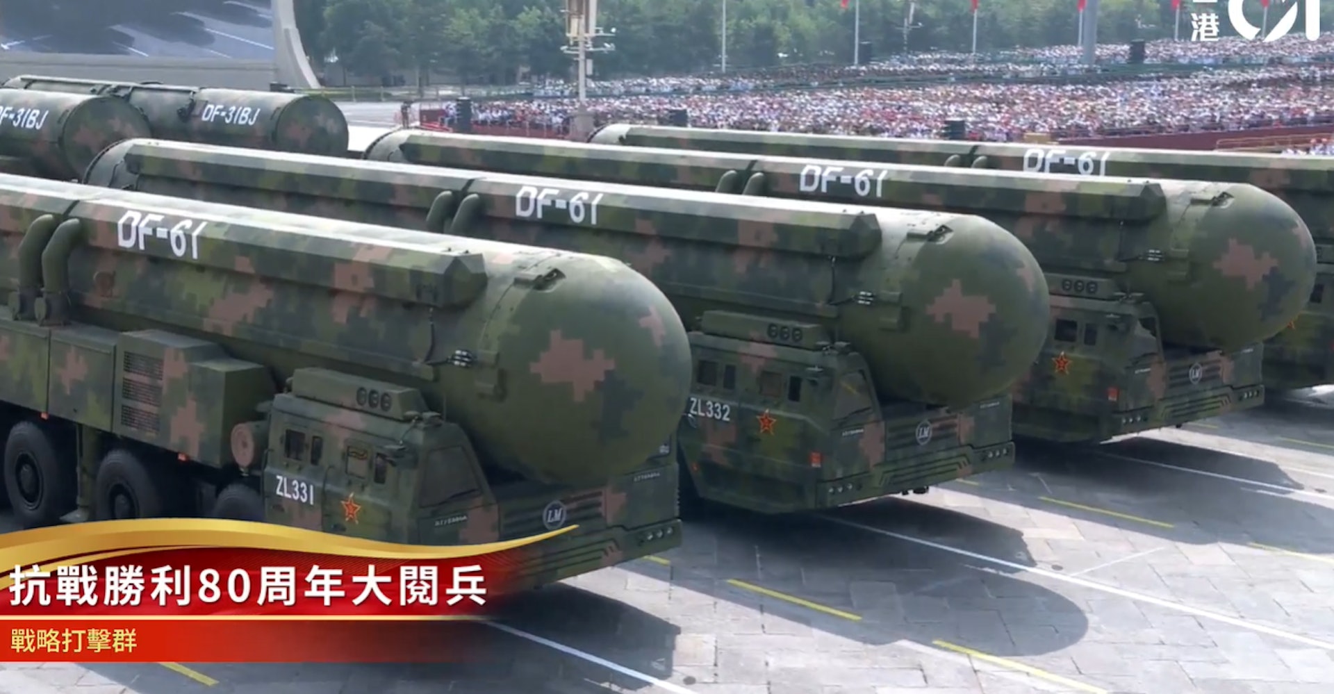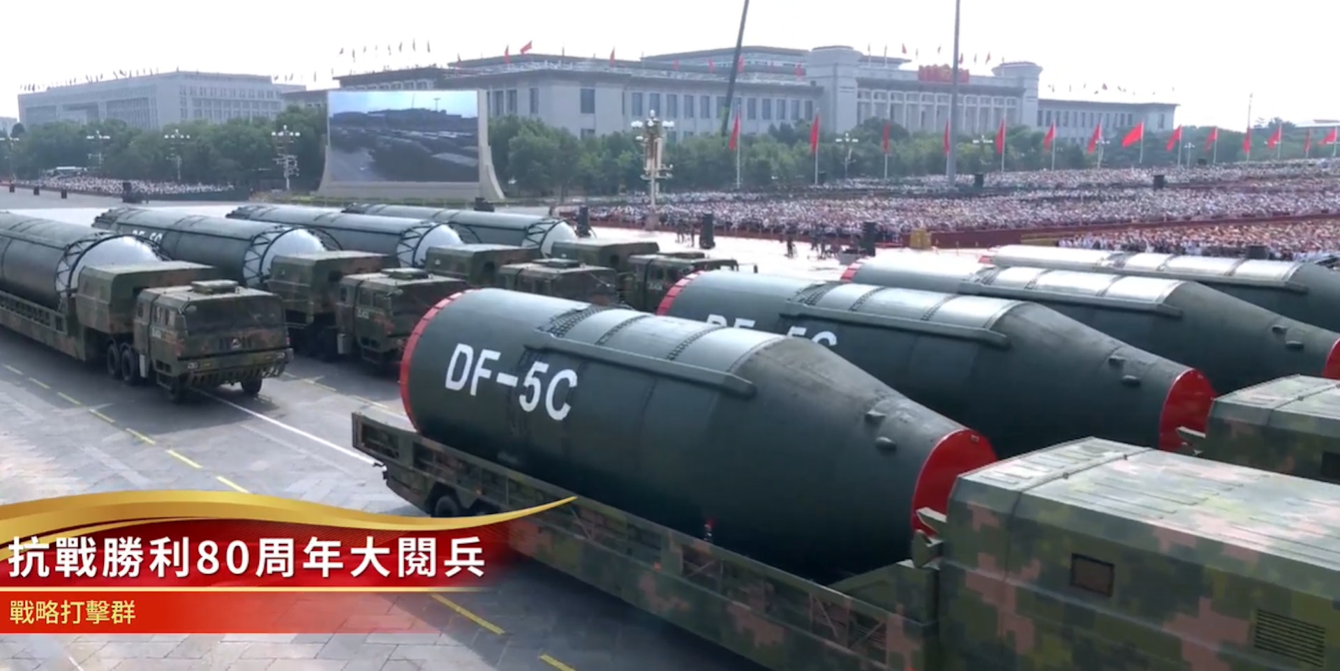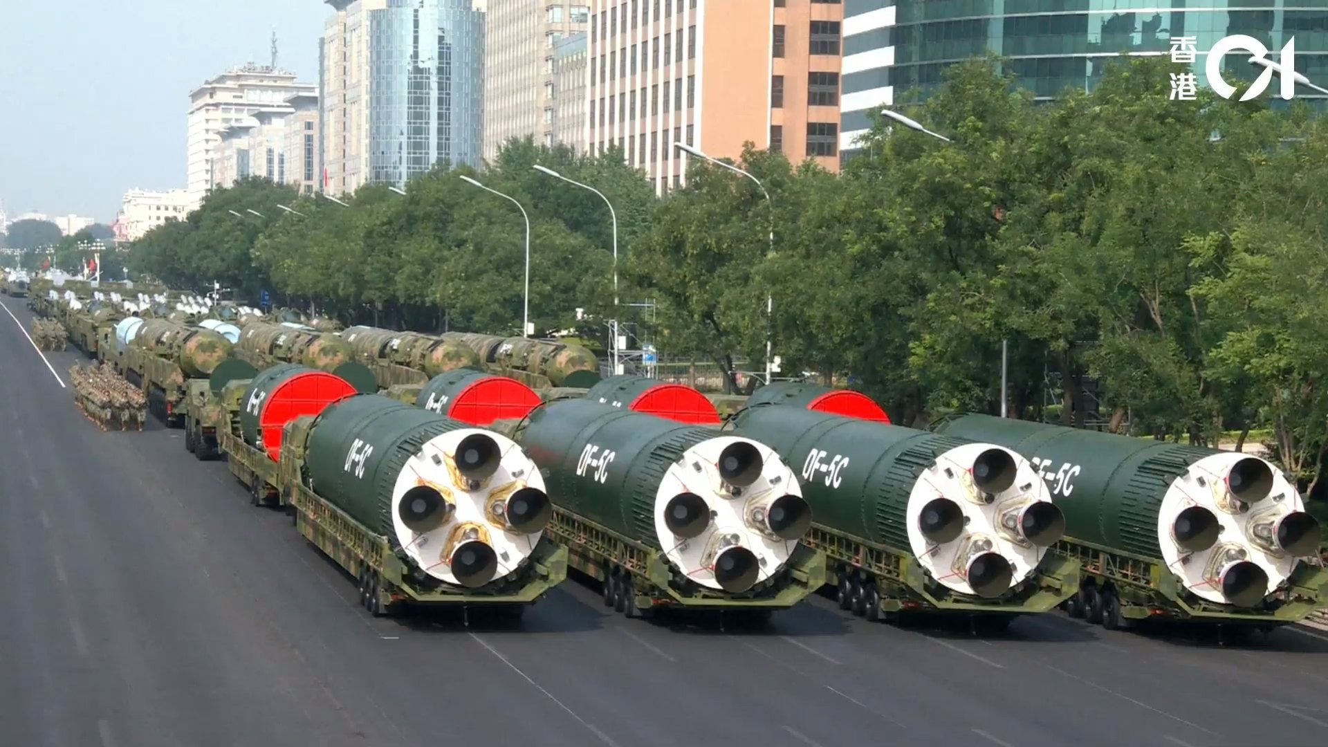 ' h9 O& Y, d, x九三閱兵,東風-5C液體洲際戰略核導彈。(香港01直播截圖)5.39.217.77:88989 ~/ Q' N: p" _& v5 d