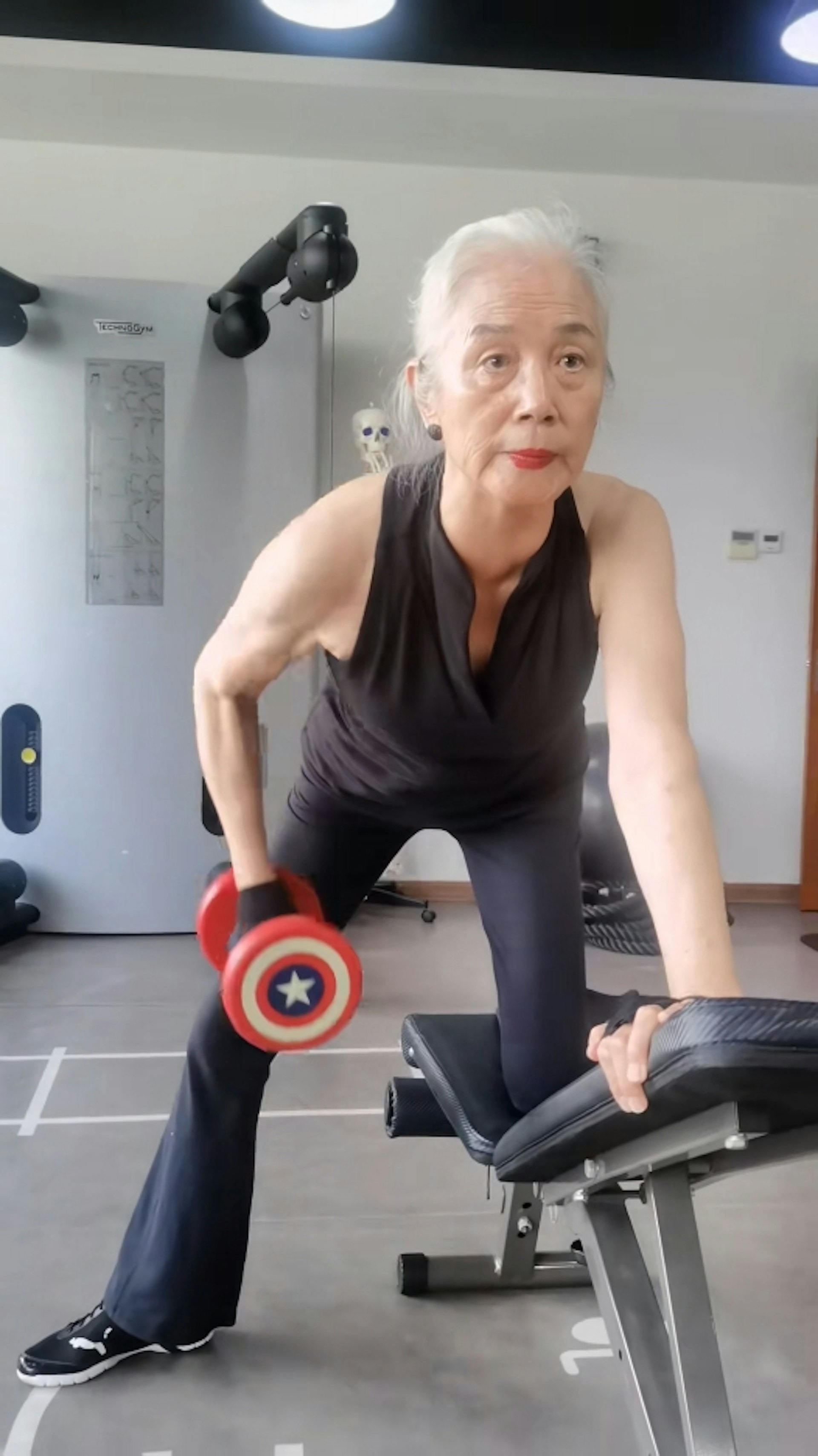 白婆婆逢周一到周五練習,每次上課1小時,但會提前1至1個半小時熱身,常練習的項目有普拉提、擼鐵、有氧、無氧運動等。對於一些高強度的健身項目,白婆婆稱「沒有壓力,得心應手」。# n; [3 U/ Z9 ]2 u" N