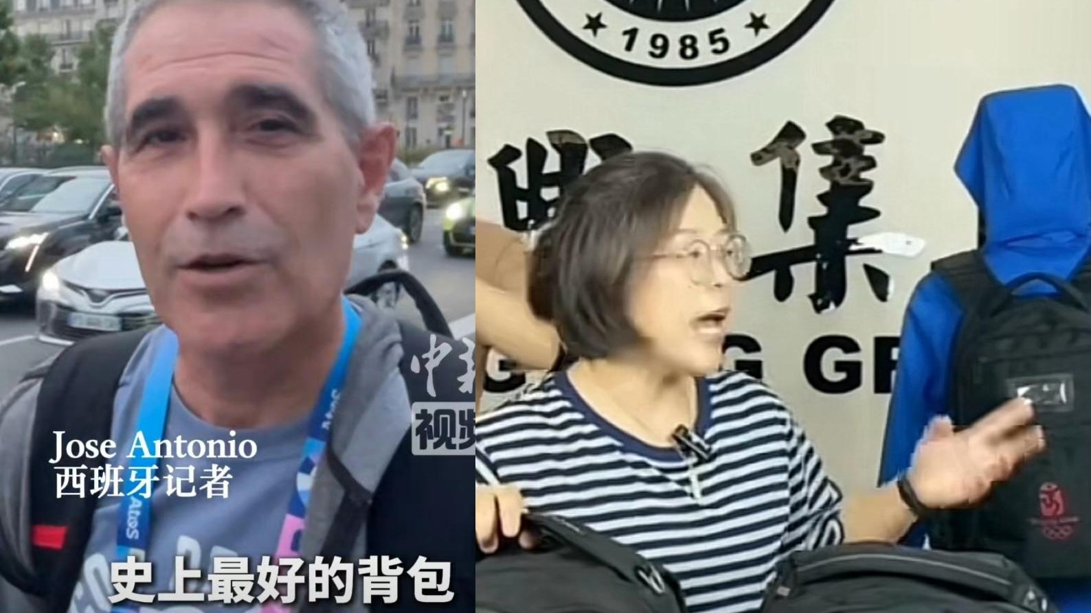 ; h( k! ]3 [; l2 A據此前報道,7月24日,一位西班牙記者背著2008年北京奧運會的背包出現在巴黎,他表示使用這個背包已有16年,並稱「這是史上最好的背包。」