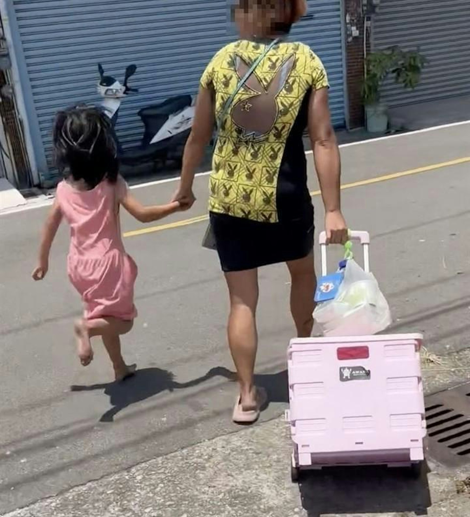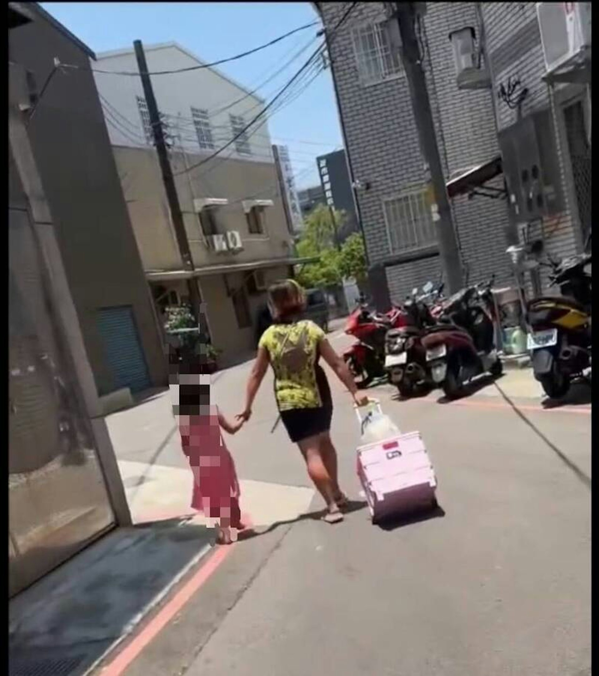 影片拍攝者曾詢問婦人,小孩為何沒有穿鞋,卻被回「小孩自己搞丟的,沒錢可以買給小女孩。」拍攝者提議帶孩子去買,但又被婦人回絕,繼續拖著小女孩快步向前走。目擊者說自己一路跟了將近20分鐘,即是指女童赤腳踩在滾燙柏油路上也將近20分鐘。
