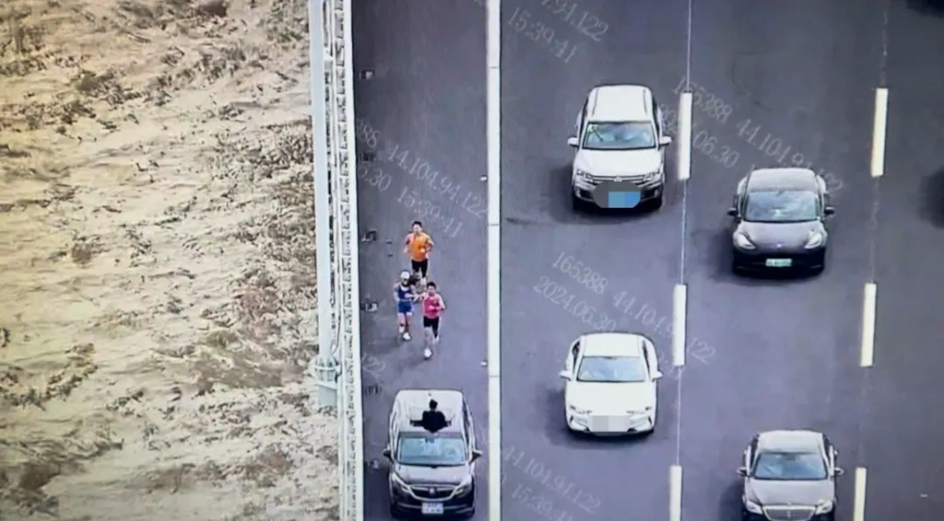 # i* Q+ J9 ~0 z公仔箱論壇中山交警多布多張監控照片,顯示有人為打卡而在應急車道上跑步。(中山日報), M* V ]( t9 B4 @- `