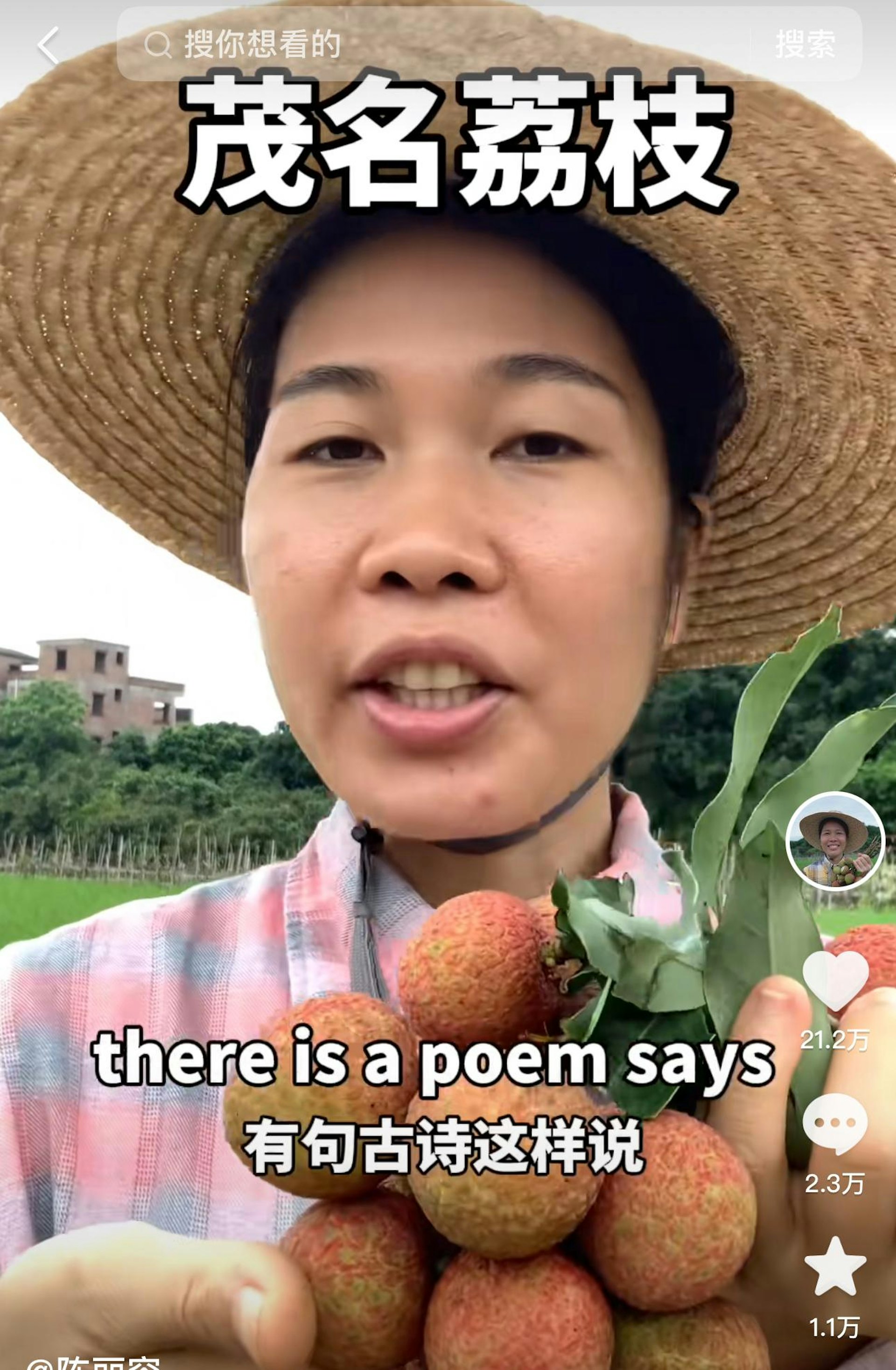 ! q2 g# @2 ]+ E& ^- btvb now,tvbnow,bttvb陳麗容有古詩推銷茂名荔枝。(影片截圖)