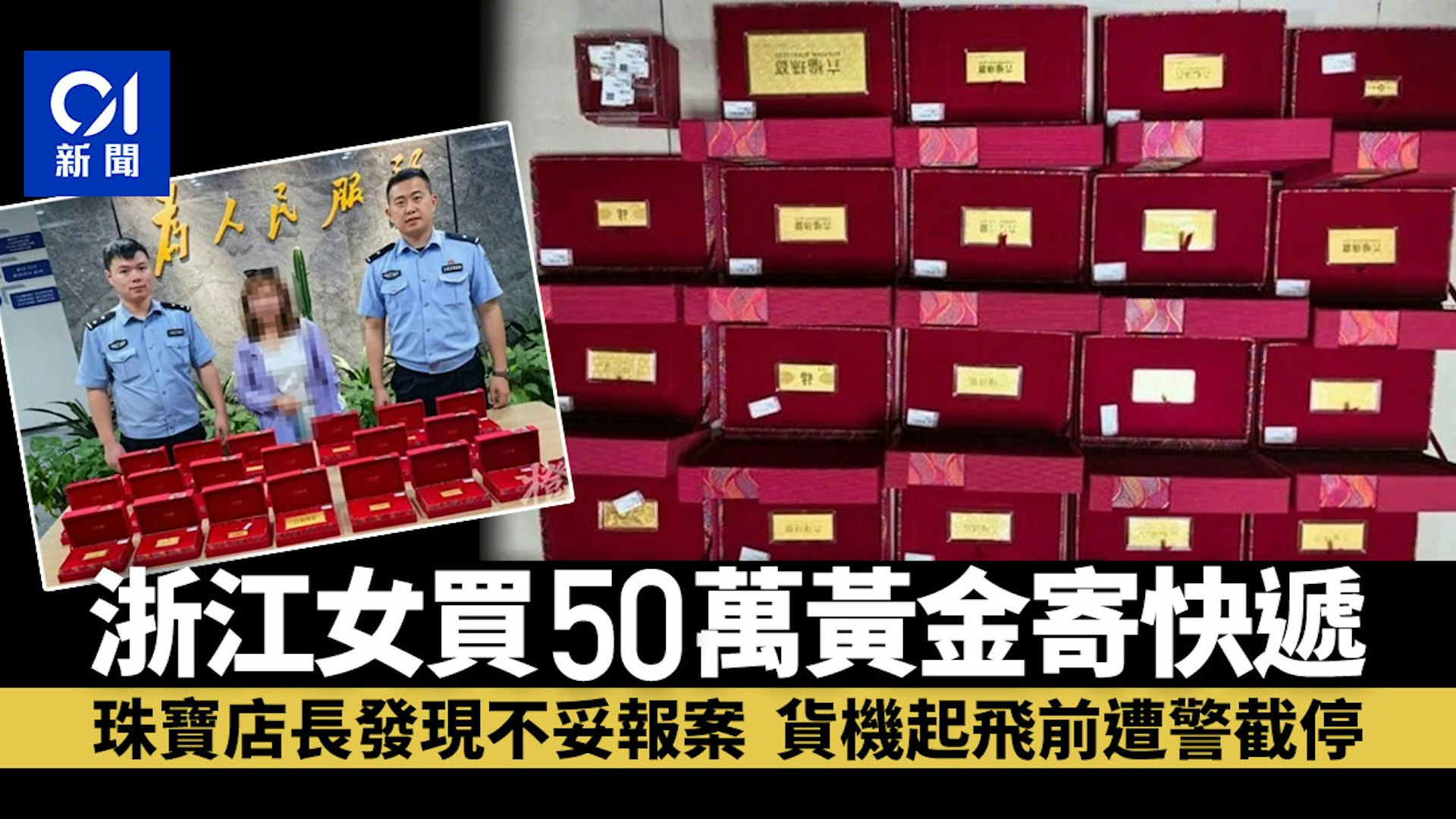 ! P$ q3 v' @3 u浙江紹興李女士(化名)近日在六福珠寶購入多塊金牌,總值50萬元(人民幣,下同),更要求寄到外地,幸珠寶店店長發現不妥向警方求助,才能在貨運飛機起飛前將包裹攔下,讓李女士避過投資理財詐騙,免受損失。