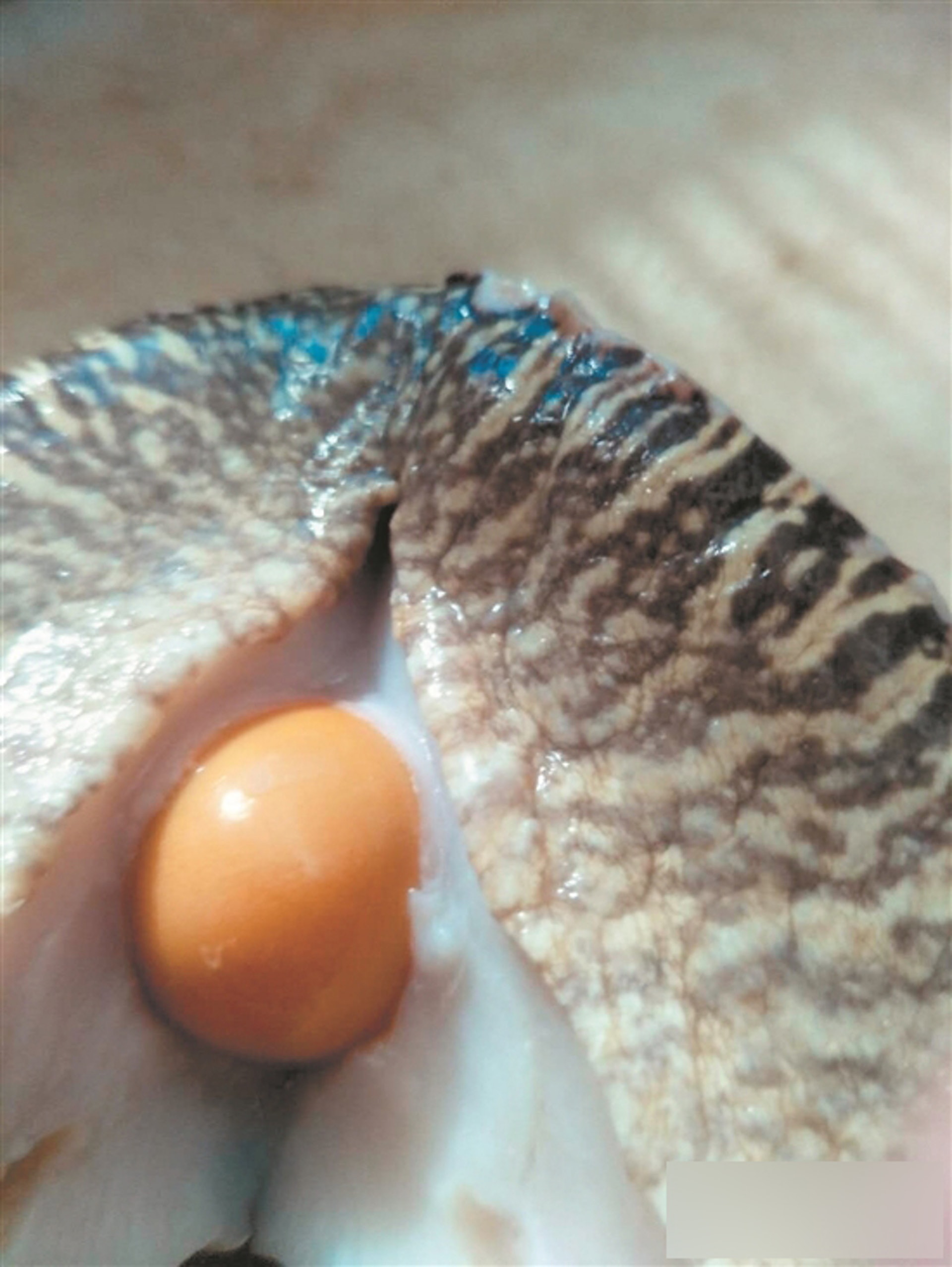據了解,美樂珠又稱「龍珠」或「火焰珠」,成分和多數貝殼類相似,顏色有橘紅、橘黃、黃、黃褐到近白色,具有陶瓷般的晶瑩外觀,亦有火焰的紋路,形狀從不規則、橢圓到蛋形都有。由於美樂珠從海螺中找到的概率是數千分之一,加上沒法人工培養,尺寸大、質量好的美樂珠價錢可達千萬。7 V6 r4 d5 z5 B( ?* d6 h