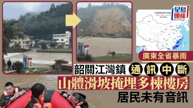 廣東全省暴雨持續,清遠、英德等多地宣布周一停課。另外,廣東韶關市武江區江灣鎮出現山體滑坡致多棟樓房被掩埋。由於江灣鎮從昨晚開始已和外界失聯,目前不知傷亡情況。
