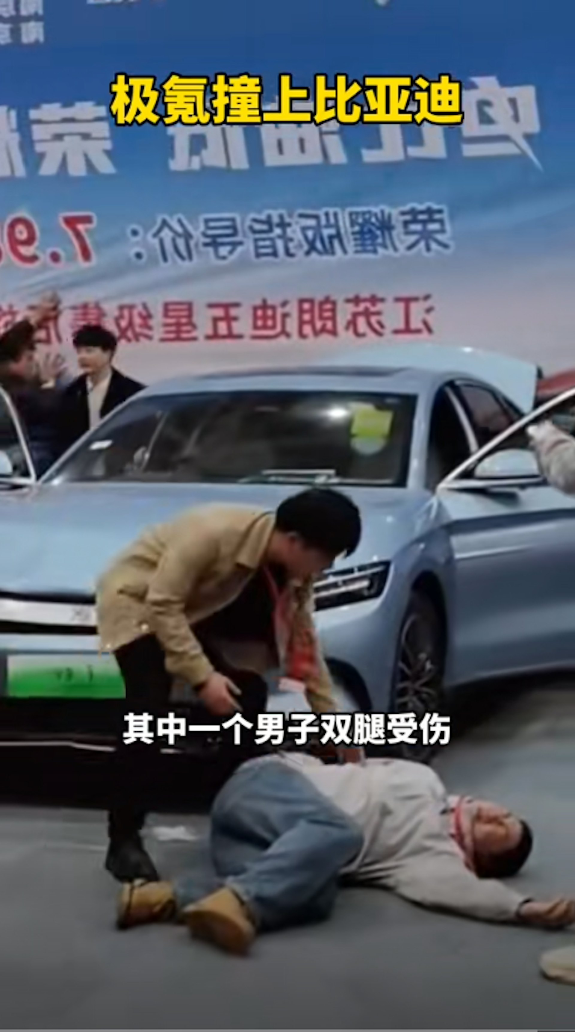 據內媒報道,網傳影片顯示,在展會大廳內,一輛灰色車輛直接撞向一輛正在展示的比亞迪新能源車,而灰車內有司機。在車輛旁,有帶工作證的人員和一名男童倒地不起。
