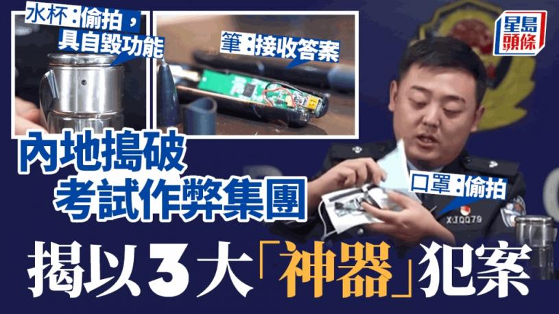 調查中,民警發現原子筆只是這套「作弊神器」中用來負責接收答案的部分,而與之配合的還有考生所攜帶的口罩和水杯。口罩和水杯上均暗藏鏡頭,分別從不同角度偷拍試題傳送至場外的「槍手」手中,負責做題的「槍手」將答案發送至發射塔再傳送至所有作弊考生的接收設備,包括偽裝成筆、橡皮擦、迷你耳機等。