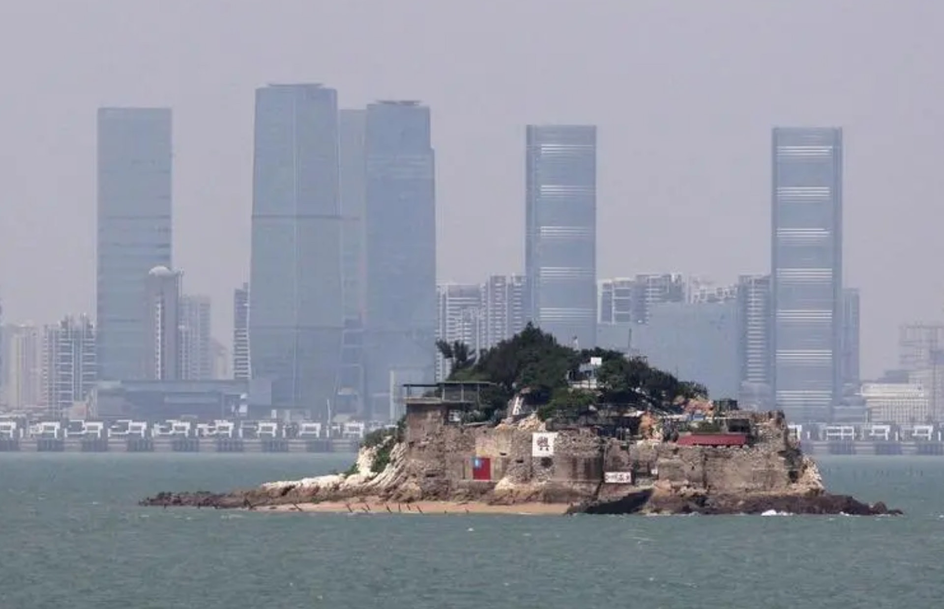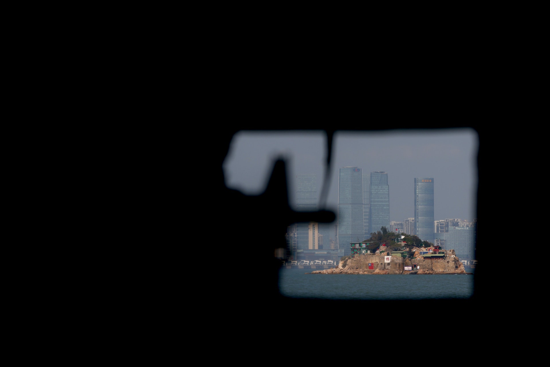 圖為2023年12月18日,鏡頭下位於小金門島與廈門之間的獅嶼。(Reuters)