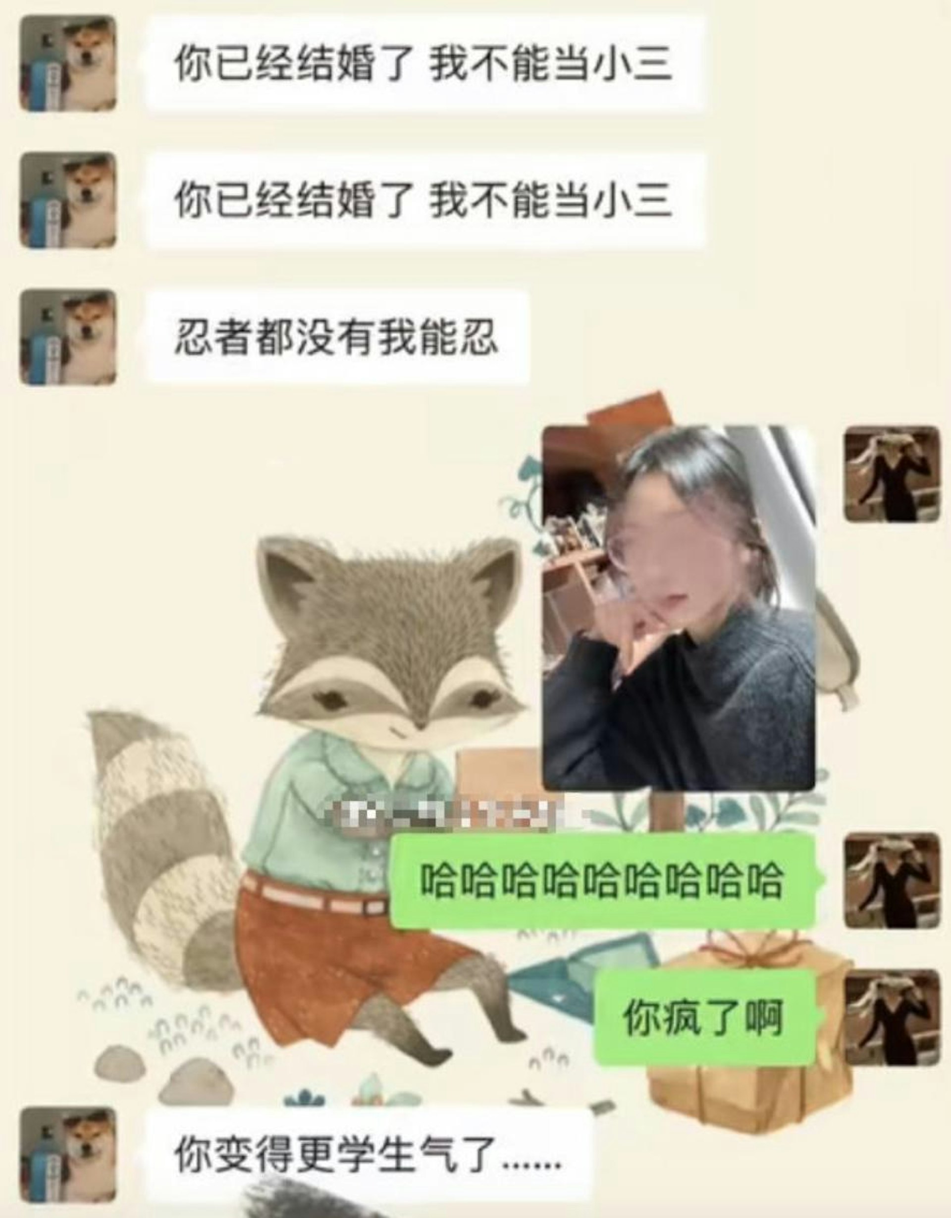 ! c# u0 R% Y2 P對話紀錄顯示,兩人對話就像熱戀中的情侶,男方頻頻誇獎張女長得漂亮還年輕得像個學生,而張女也經常給對方發自己的照片。內容中顯示,男方非常清楚張女已經結婚,還明確告知張女自己不能當小三。