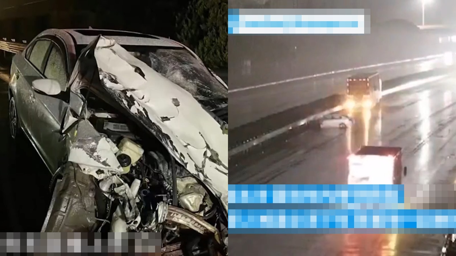 據內媒報道,在G60滬杭高速嘉興段,一輛由杭州開往上海的私家車,因路面濕滑撞向圍欄。事故發生後,私家車停在了第三車道上(即是最右側車道,通常被稱為大車行車道或緊急停車帶,緊急情況下可供車輛臨時停靠),駕車的鄭先生還在私家車後方擺放了警示牌。