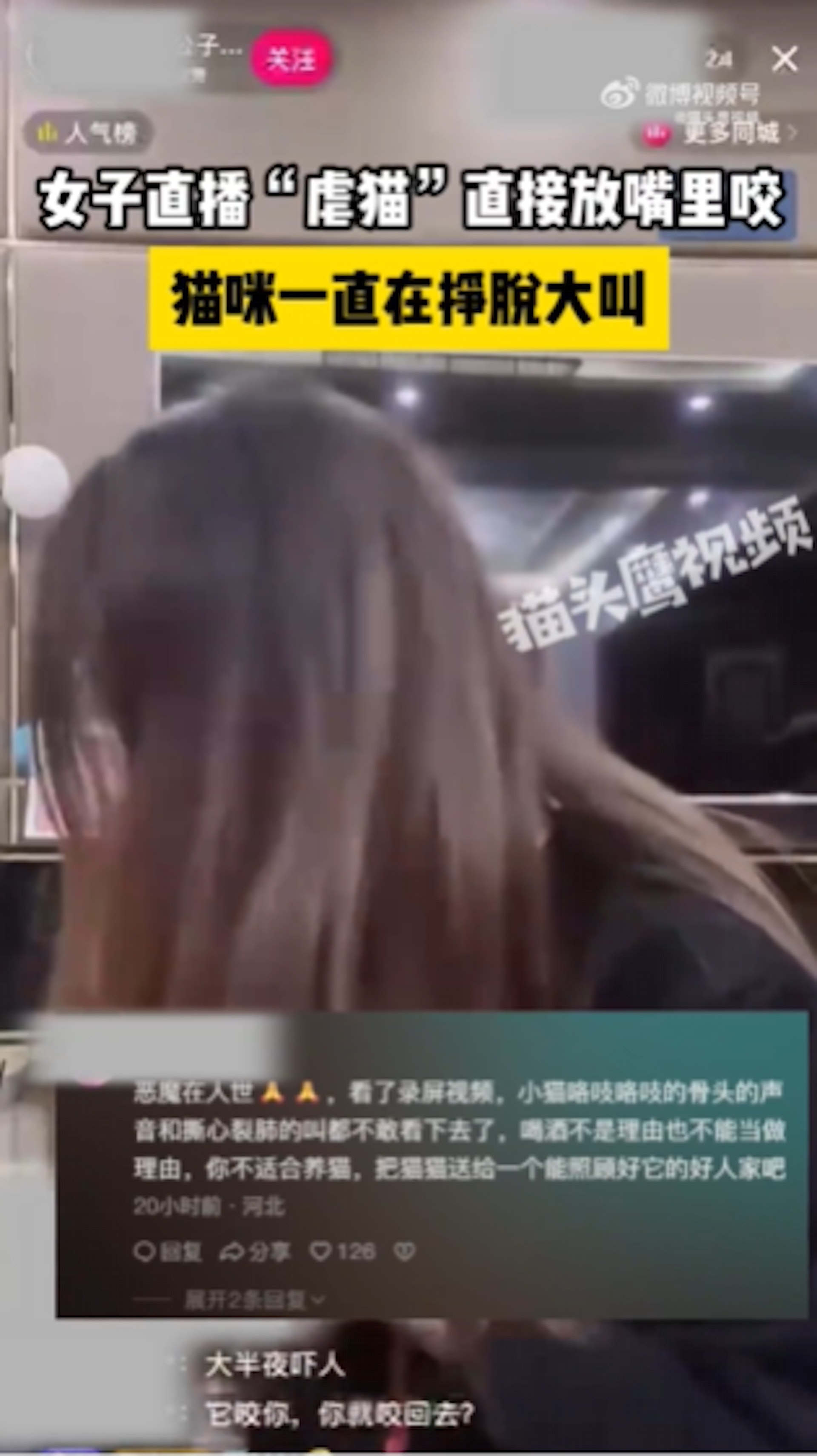 內地一宗虐貓事件引起討論,來自新疆的一名女網紅在上月30日直播時,在眾目睽睽之下抓起飼養的幼貓、直接放入嘴中啃咬,全程也都被網友透過螢幕錄影的方式存證。5.39.217.77:8898% W) r+ ^0 ?! ?6 R) ?