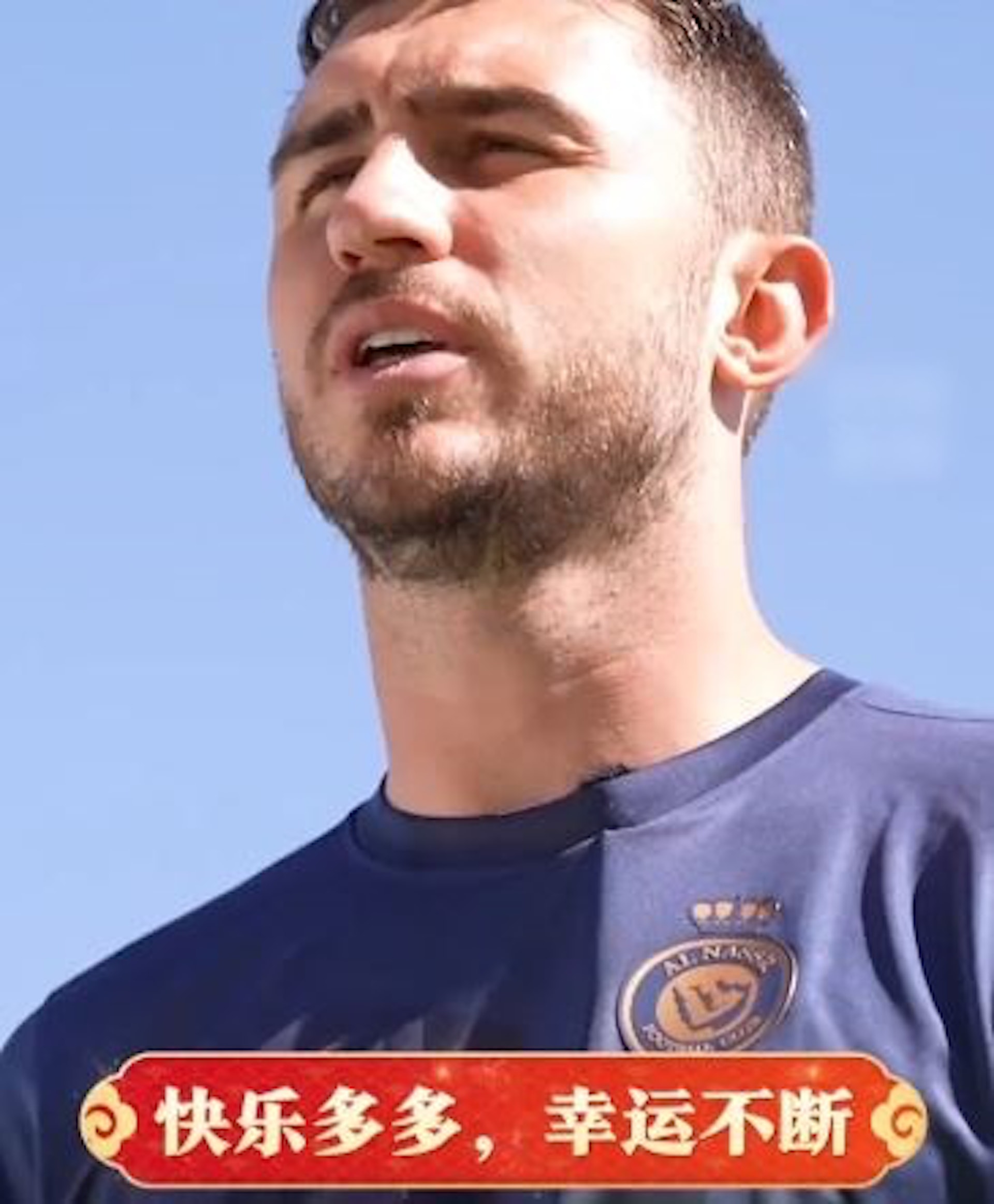 拜年影片以C朗打頭陣,他在影片說出「你好中國,準備好了嗎」,其中「你好」二字以中文說出。(影片截圖)