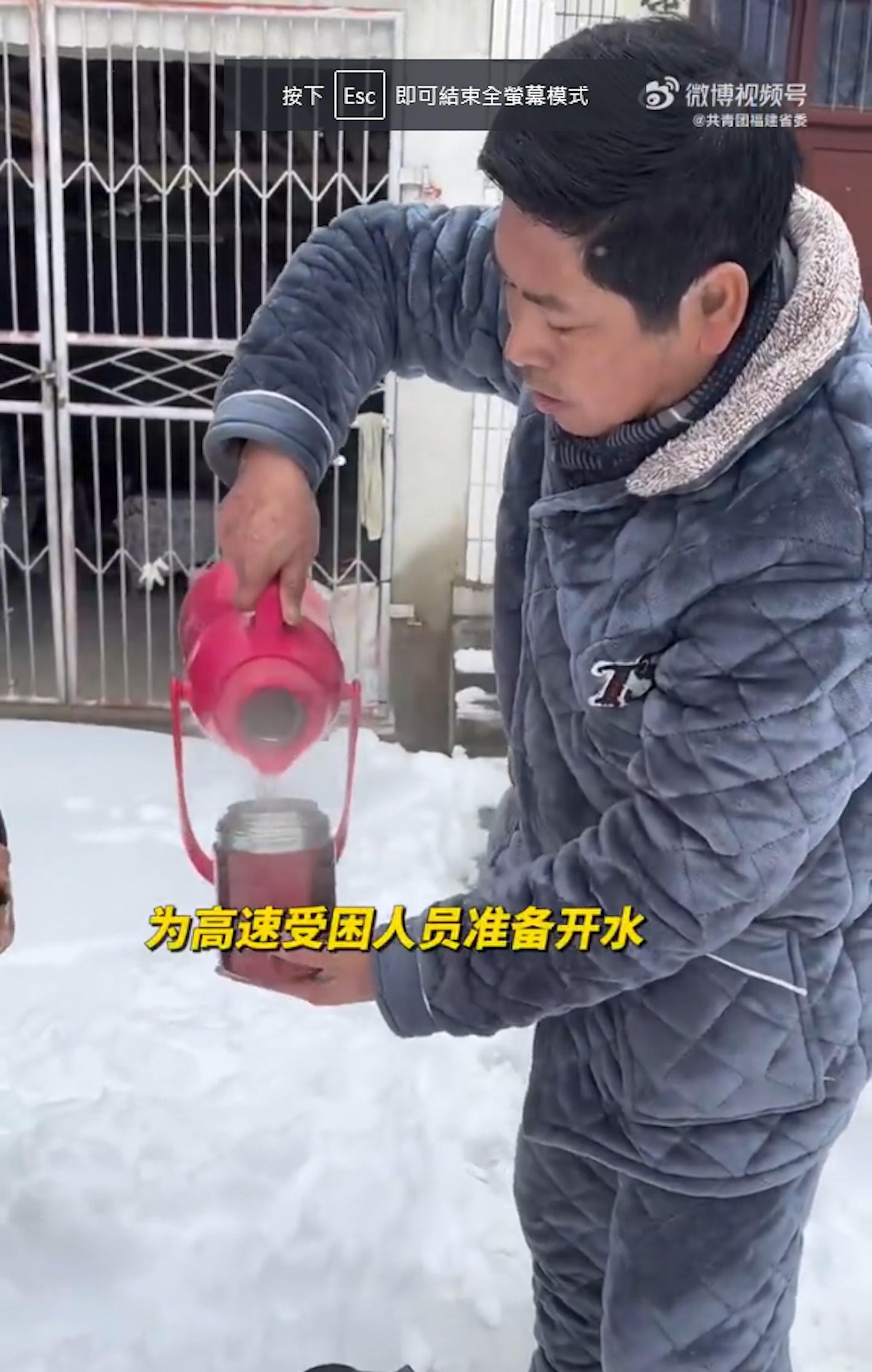 5 Q+ p/ g5 c1 Y, i8 a" c5.39.217.77:8898湖北暴雪,高速公路沿路村民開始自發為受困人員提供免費食物物資。(影片截圖)