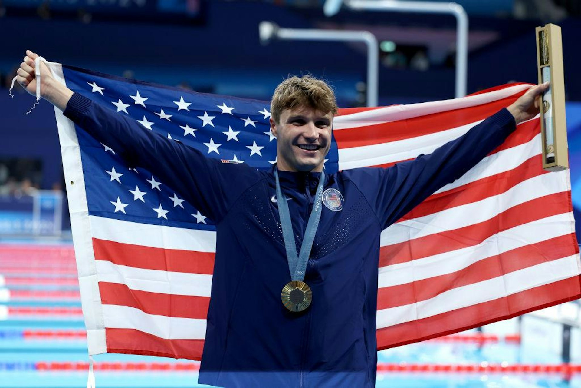 羅拔芬克奪金,終在巴黎奧運為美國男泳手個人賽「開齋」。(Getty Images)