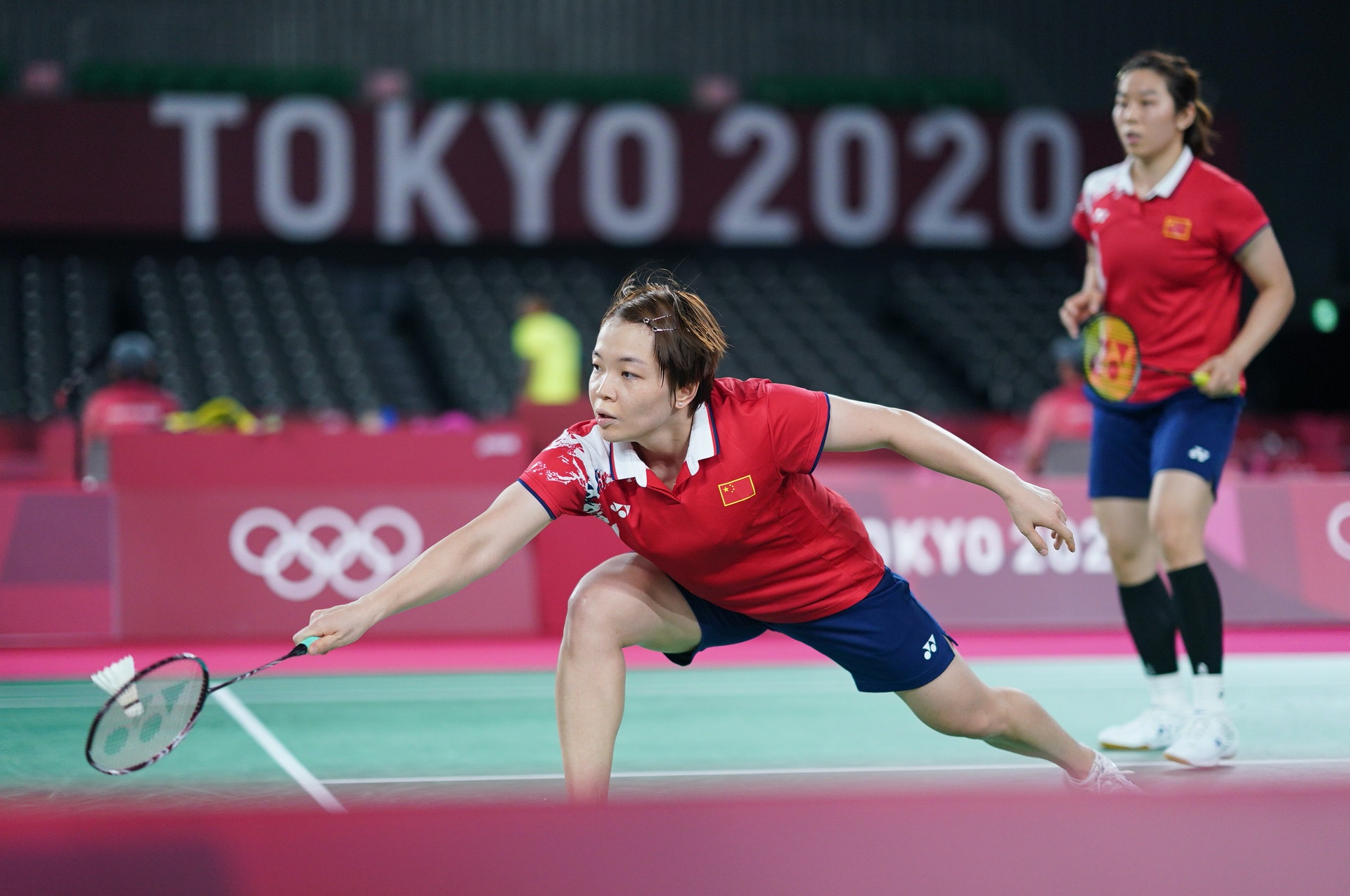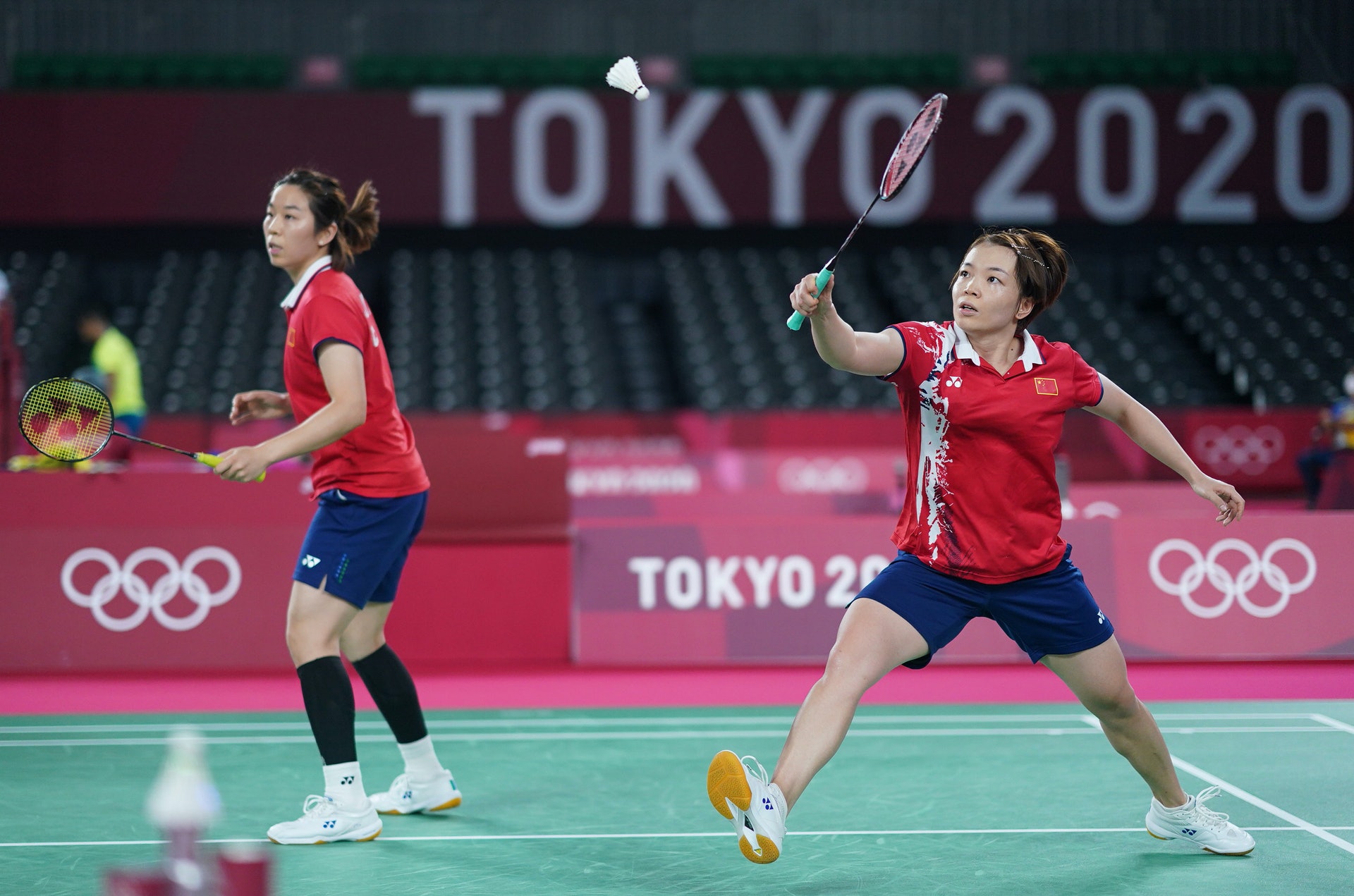. j9 A) U" d, n公仔箱論壇在東京奧運,陳清晨(右)、賈一凡撃敗韓國選手,晉身八強。(新華社)